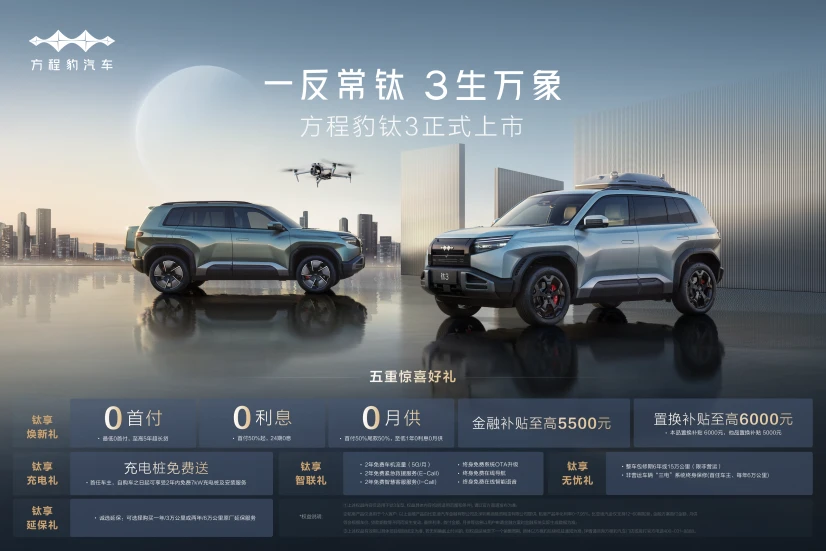 未来宣言:方程豹以「钛3」为先锋,构建起「科技普惠+个性表达」的双螺旋产品哲学,在这场古都的春日盛典中,以硬核科技与先锋美学的碰撞,重写中国新能源市场的价值方程式。