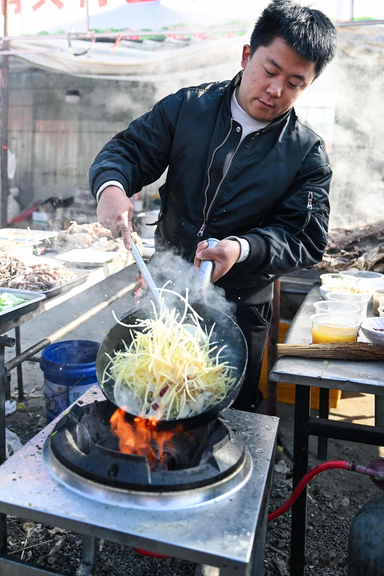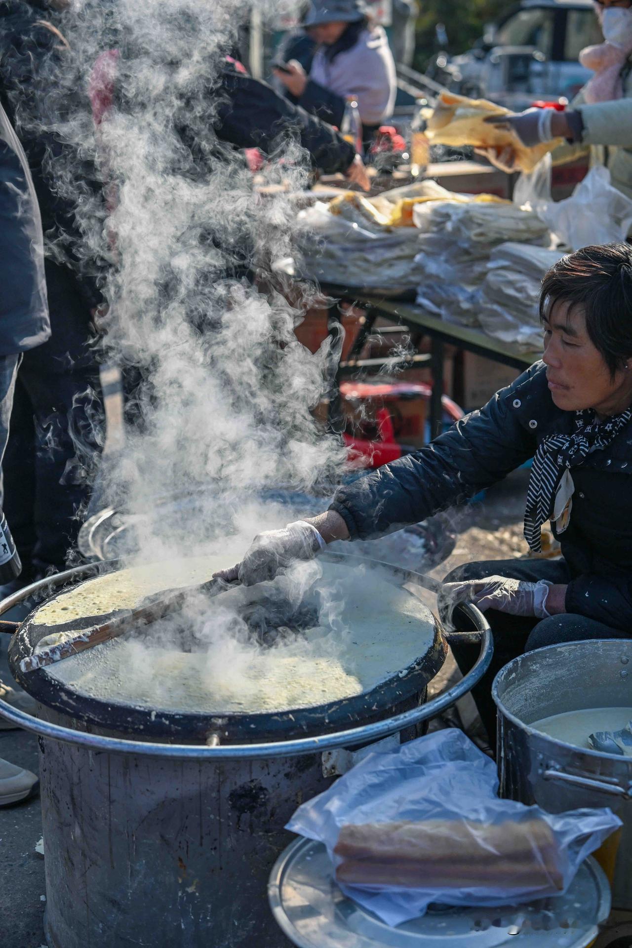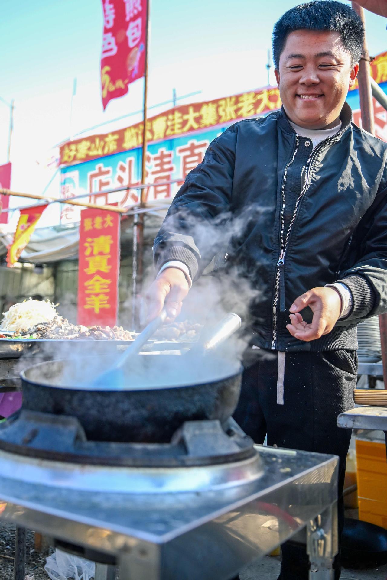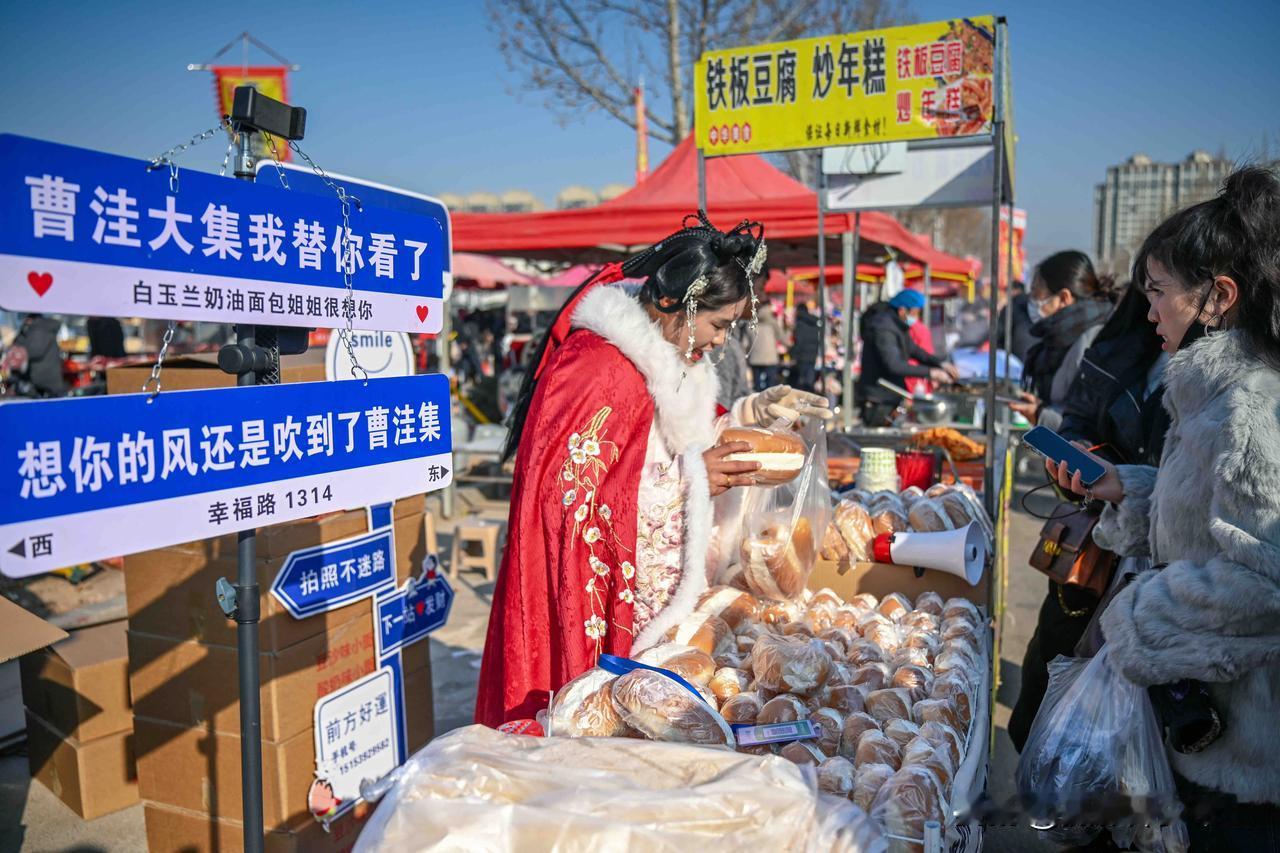 漫步临沂曹洼大集,纵横交错的街道上2000余个摊位次第铺开,除了商户们忙碌其间,赶集的人群也从四面八方涌来——他们中有早早出门的本地人,还有从江苏、安徽等地跨省而来的游客。2公里长的街道上,2000余个摊位次第铺开,蒸腾的热气包裹着煎包的焦香、羊肉汤的醇厚、年糕的甜糯,在清冷的空气中交织弥漫。