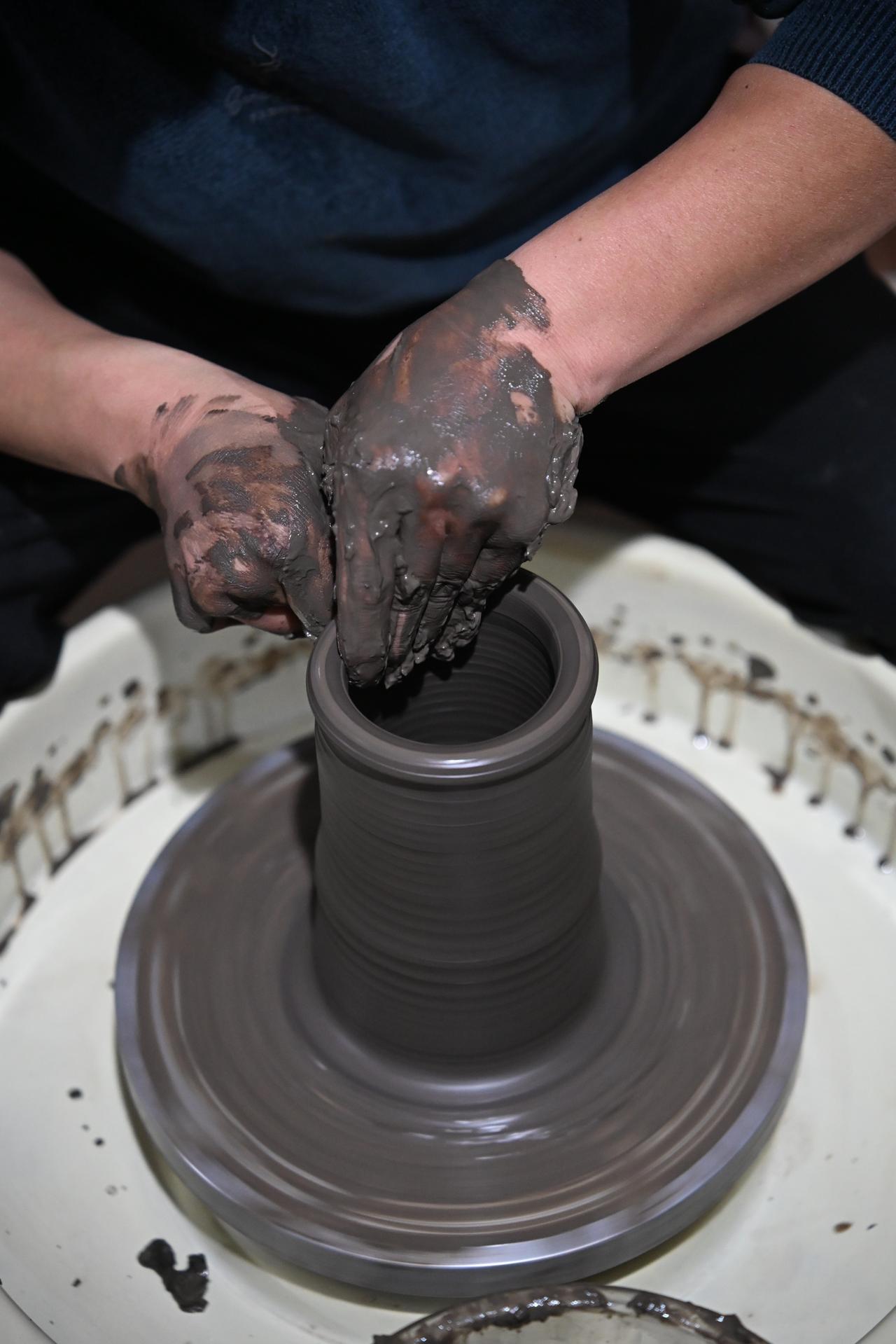 冬游齐鲁欢乐过年拉坯机匀速转动,深褐色的陶泥在指尖的力道下缓缓升腾、塑形。在中国