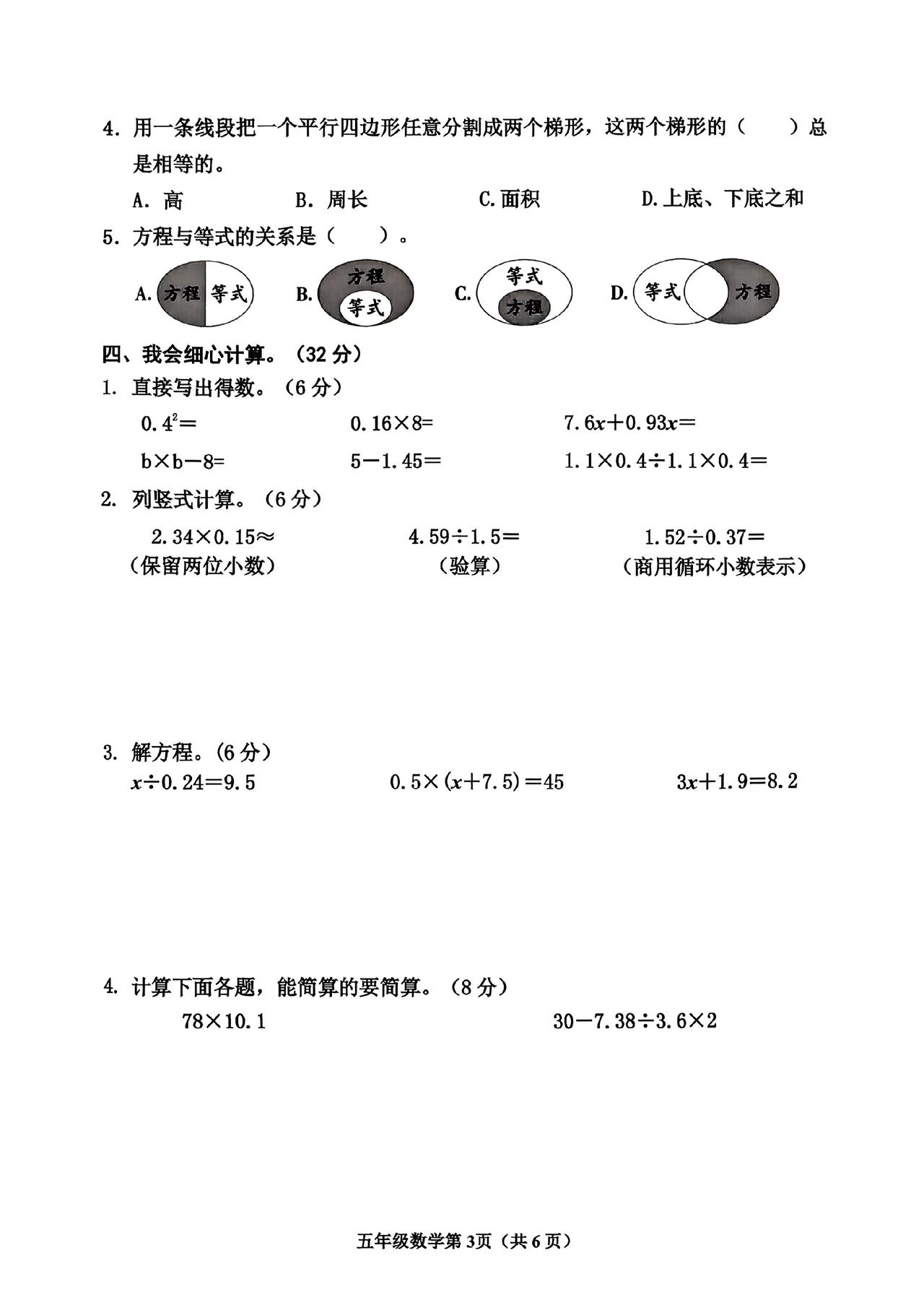 五数上期末试卷2025