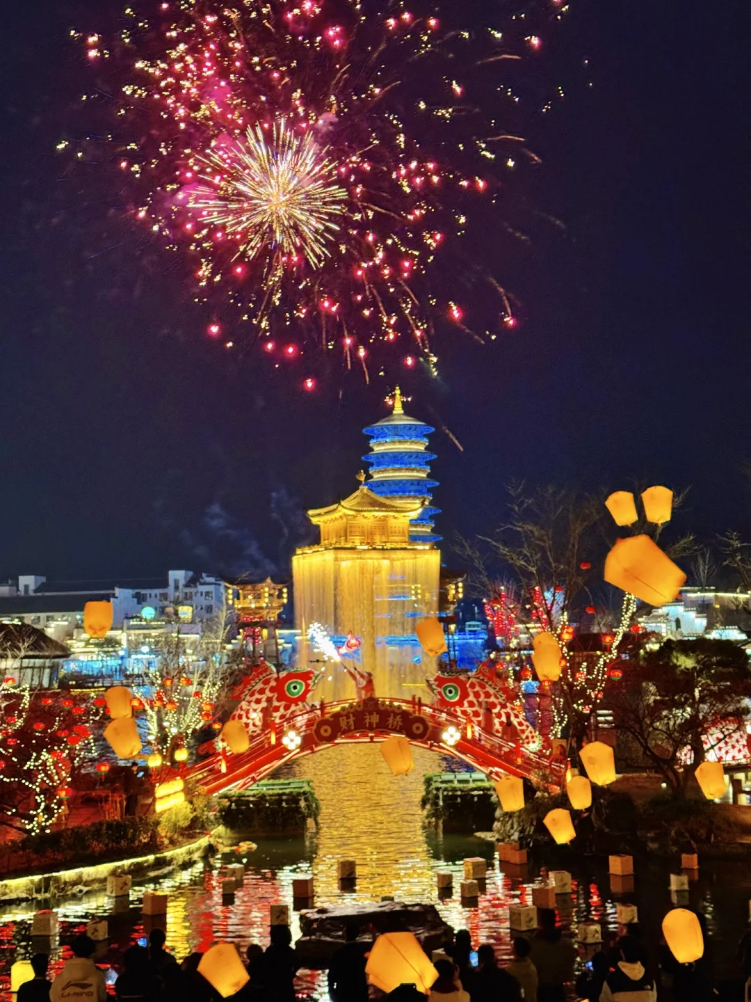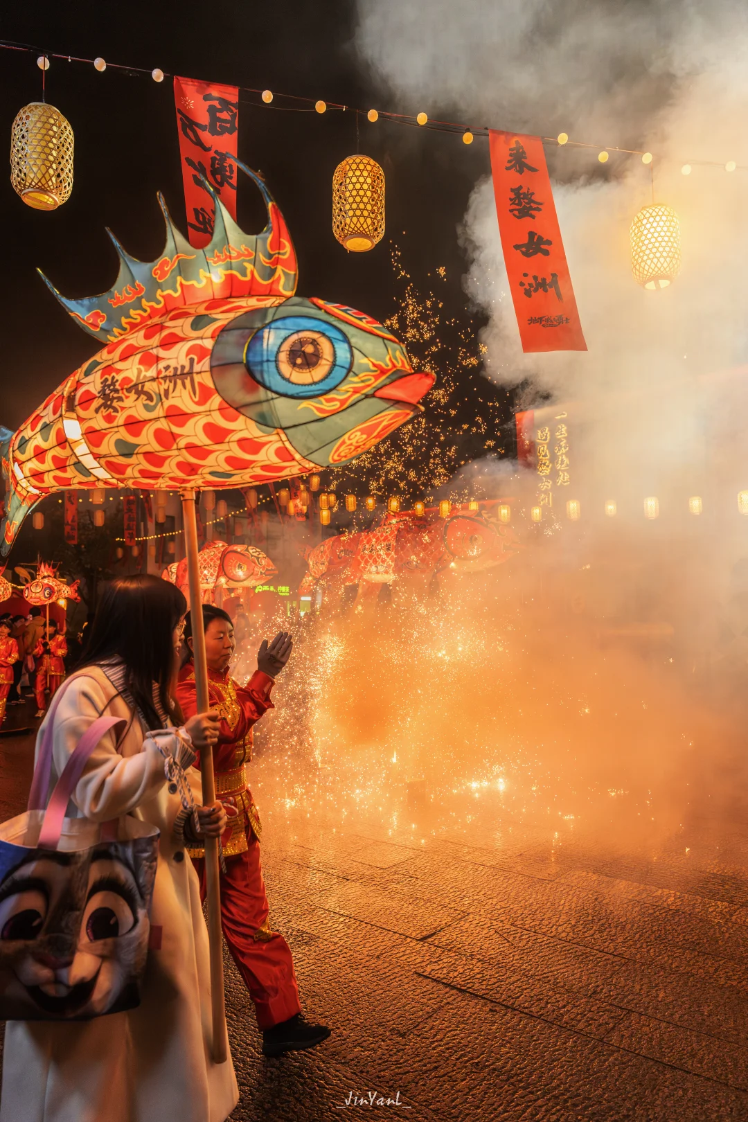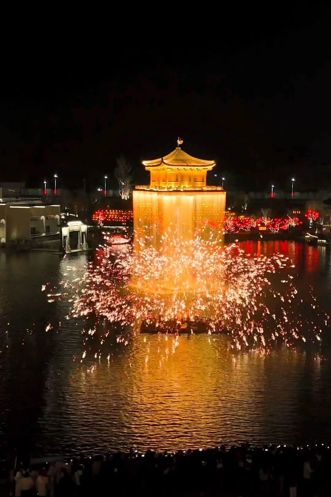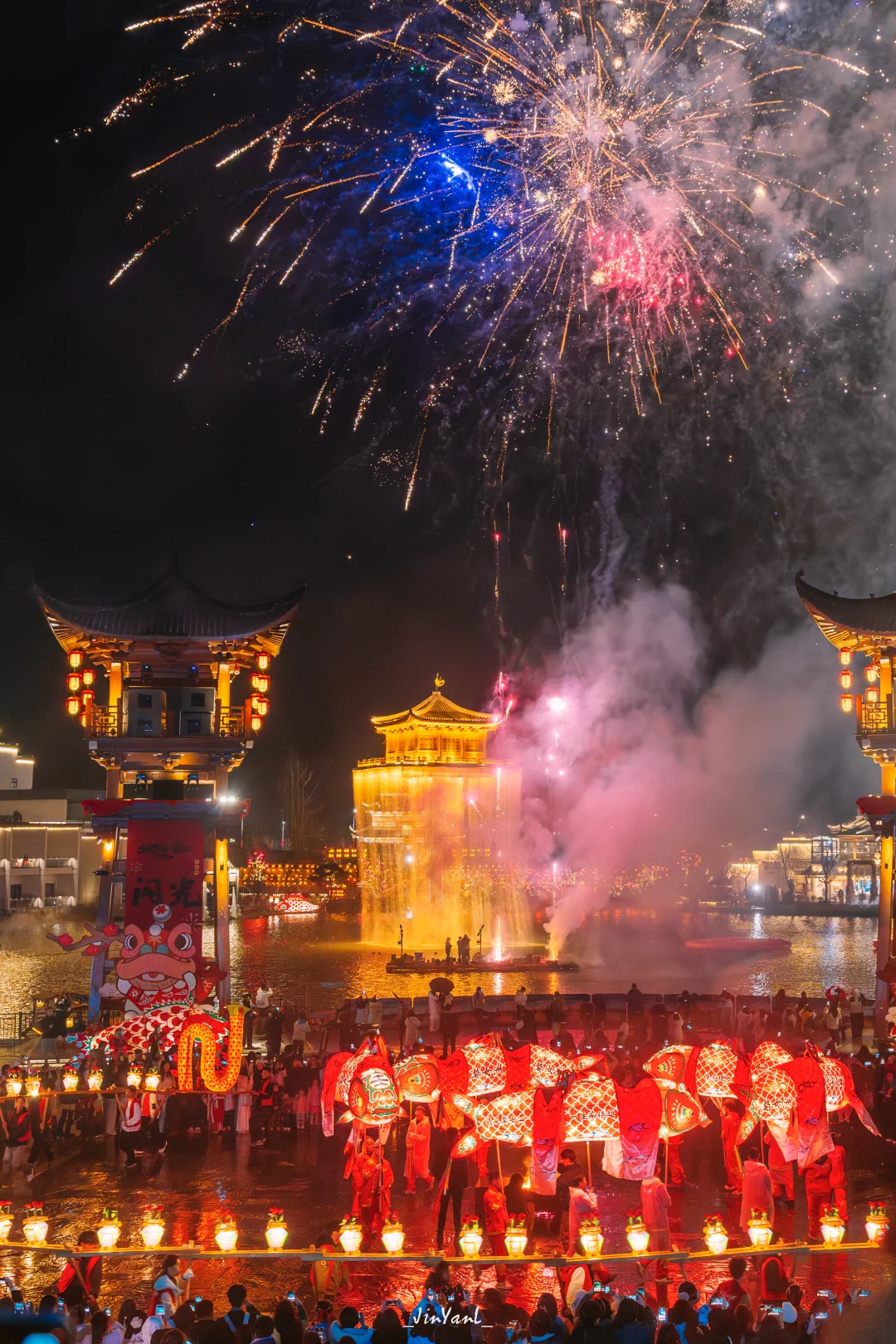 🧨婺女洲/弦高古城:夜晚首选,打铁花、烟花秀、鱼灯、庙会,繁华不夜天