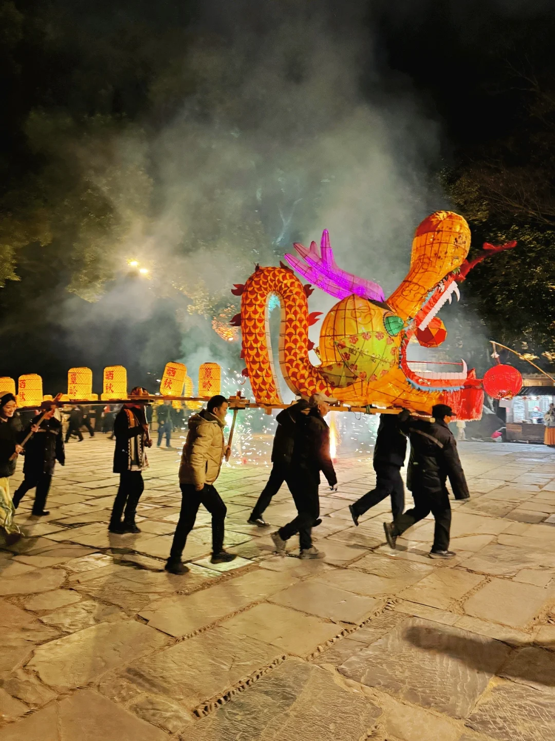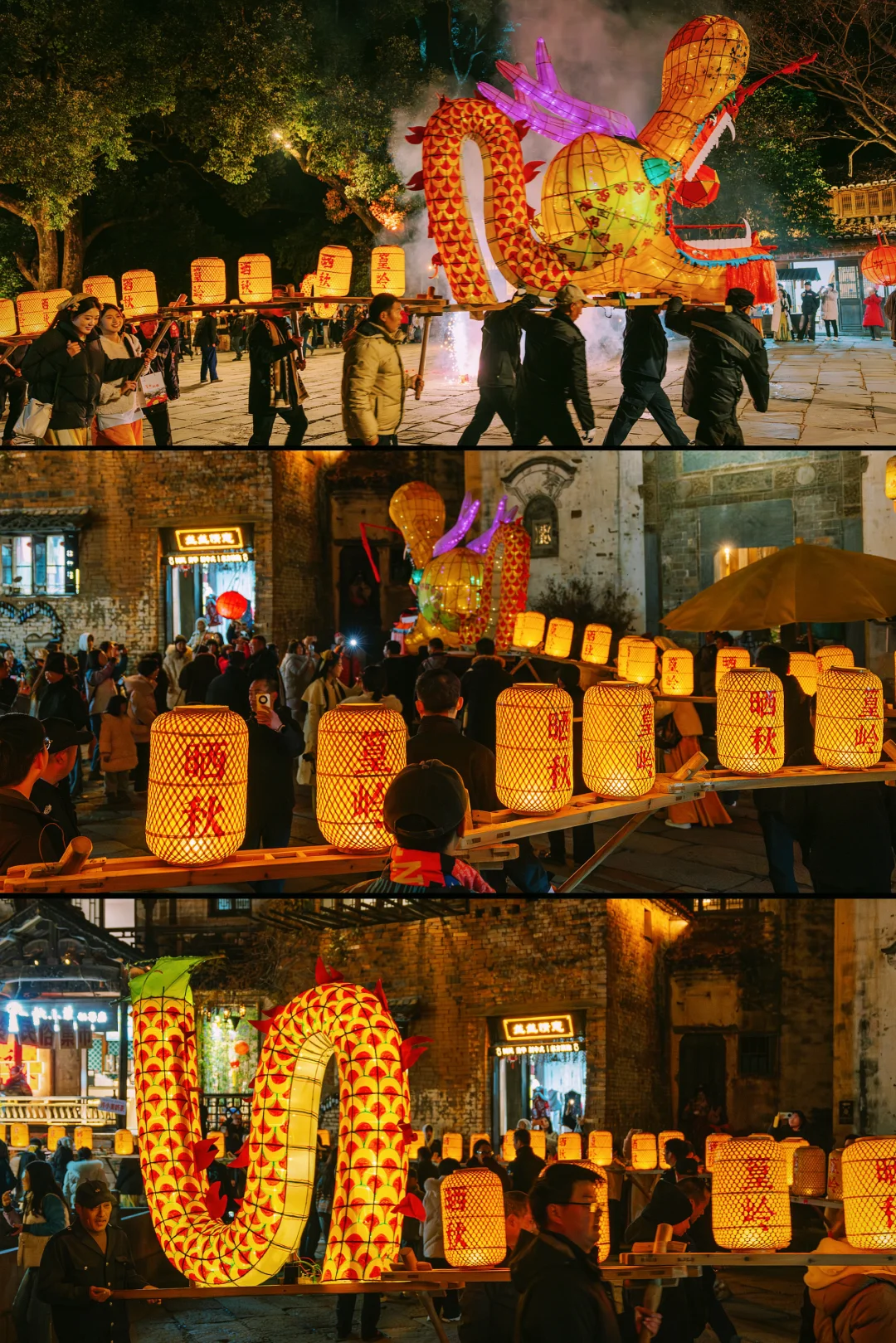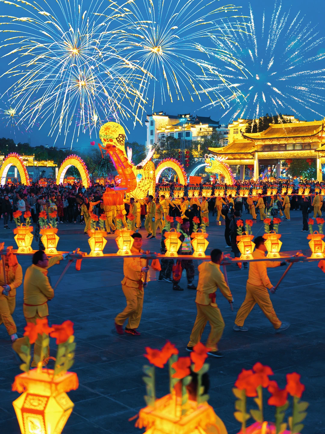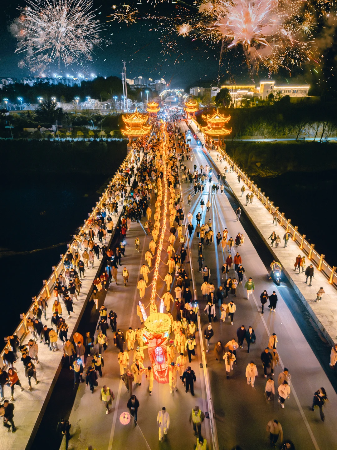 ✅晚上追龙灯看烟花(17:20起灯):百米板龙灯在夜色中蜿蜒,龙灯到哪,鞭炮烟花响到哪,那份沸腾的喜悦能点燃每个人