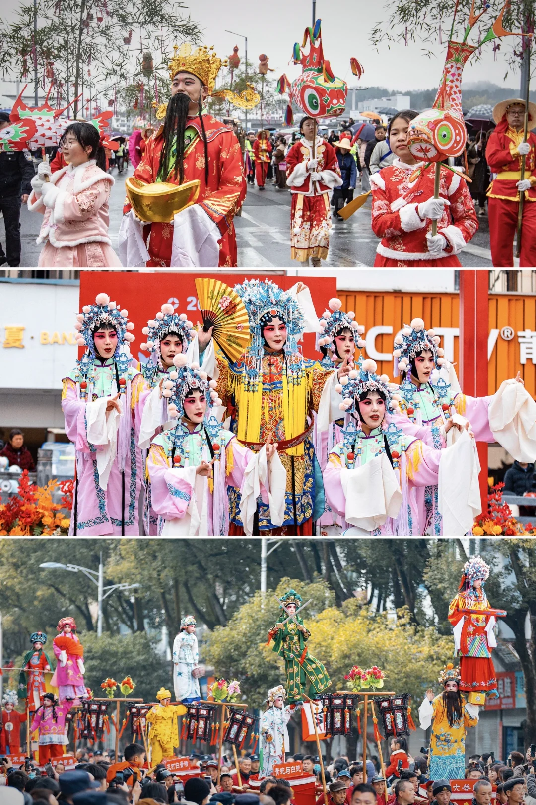✅下午跟踩街(13:30-16:00):巡游队伍里的「甲路抬阁」和「江湾豆腐架」惊艳不断,小朋友被高高架起扮演故事,精巧又喜庆