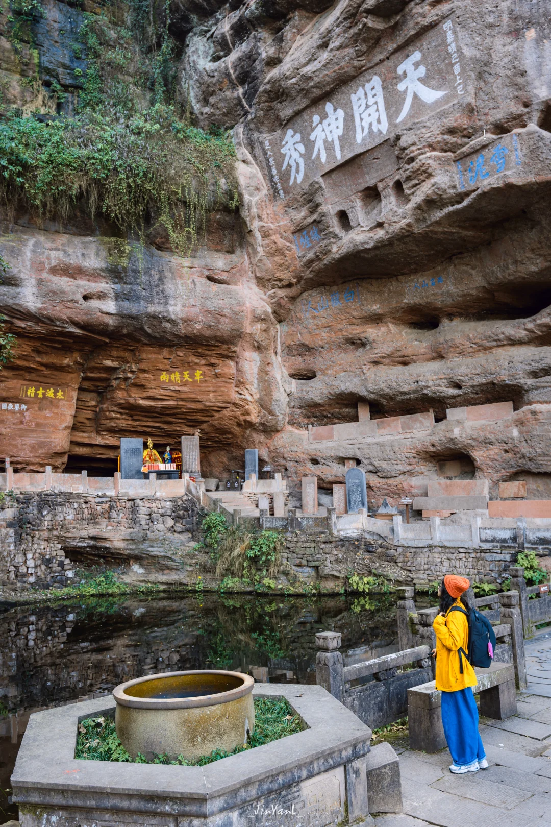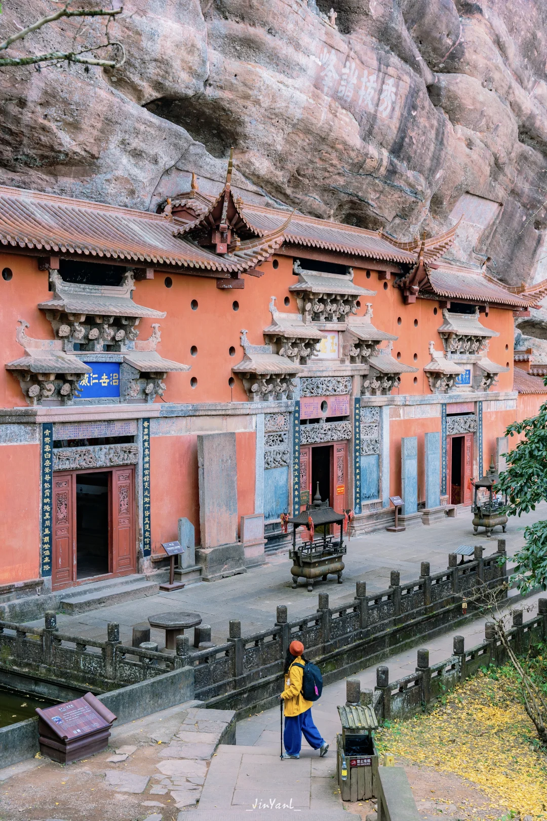 ▪️玉虚宫:红墙半嵌赤岩,如天地将这道观轻轻按进山体。唐伯虎唯1️⃣存世的碑文《紫霄宫玄帝碑铭》,字里行间全是历史厚重感