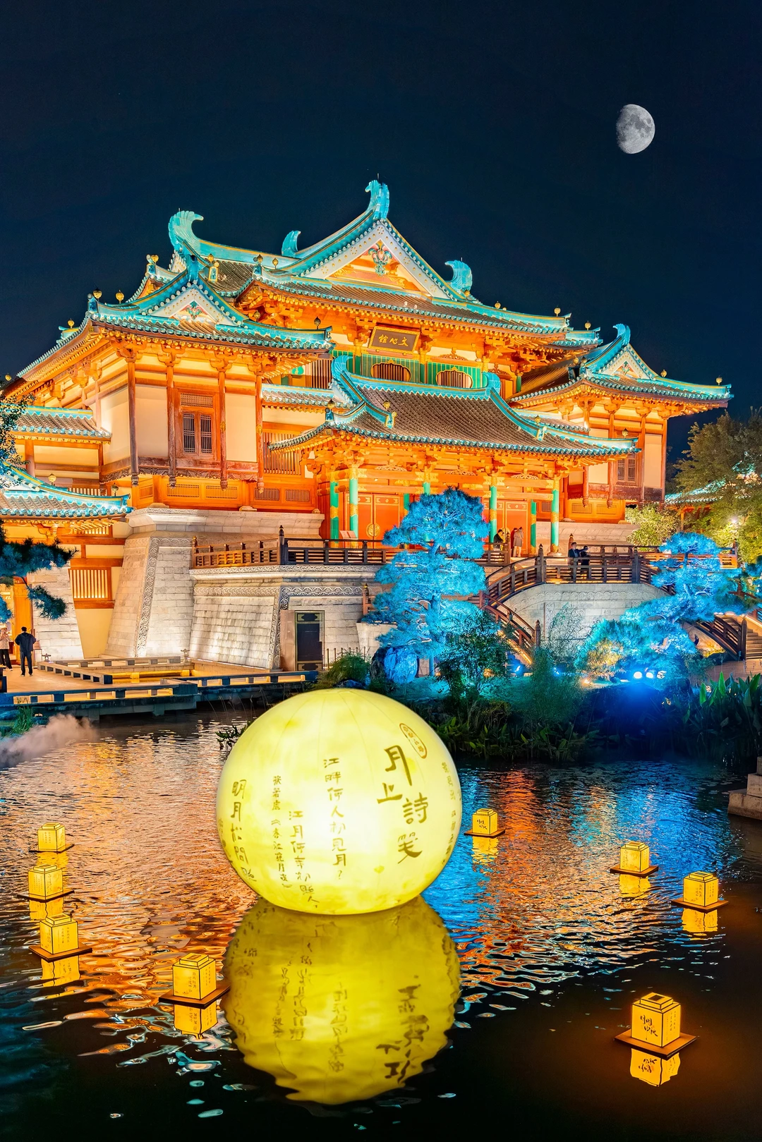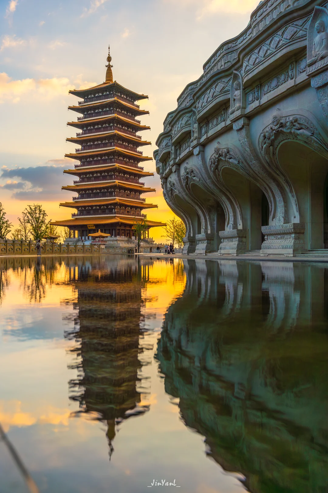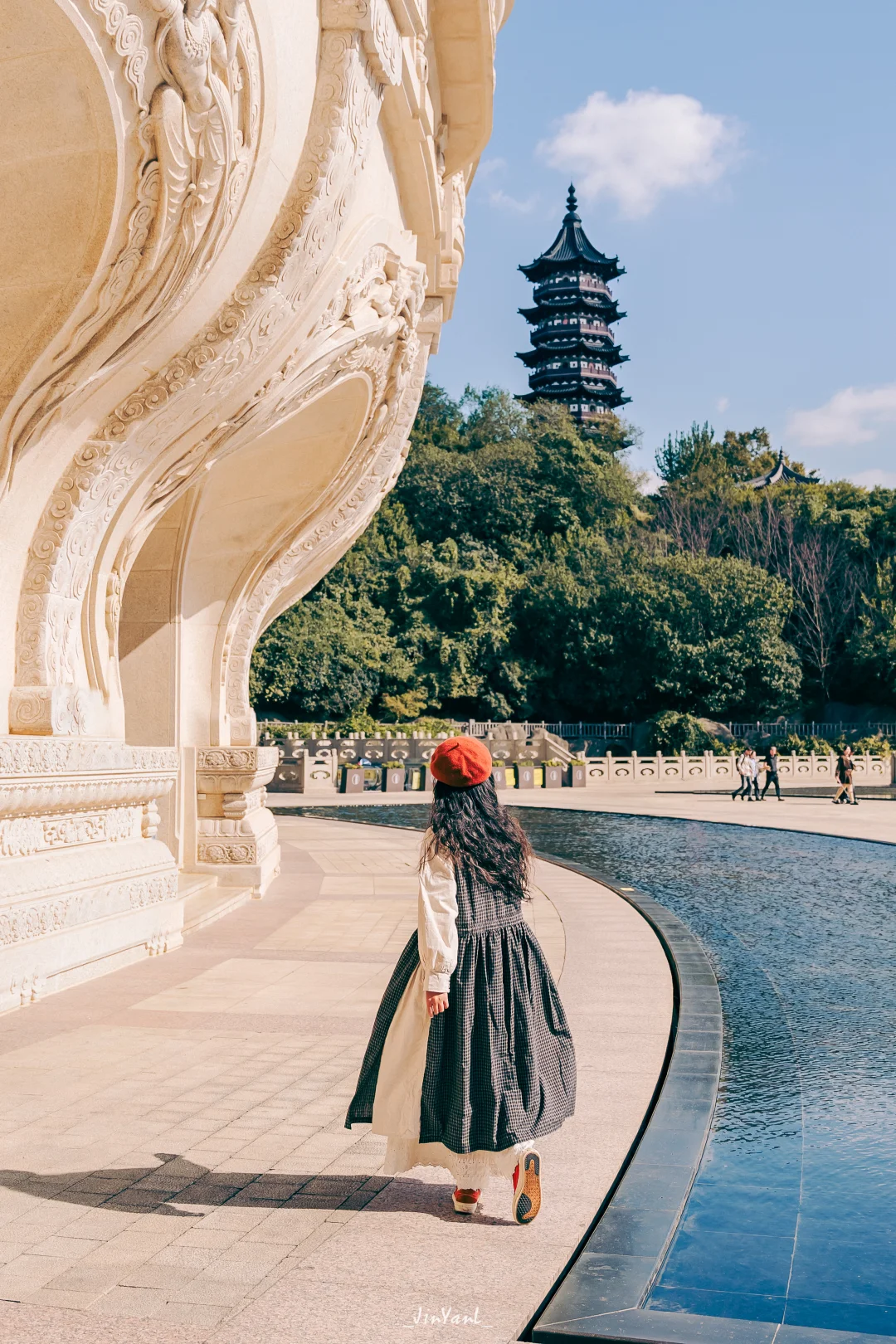 1️⃣ 佛顶宫前的水池边