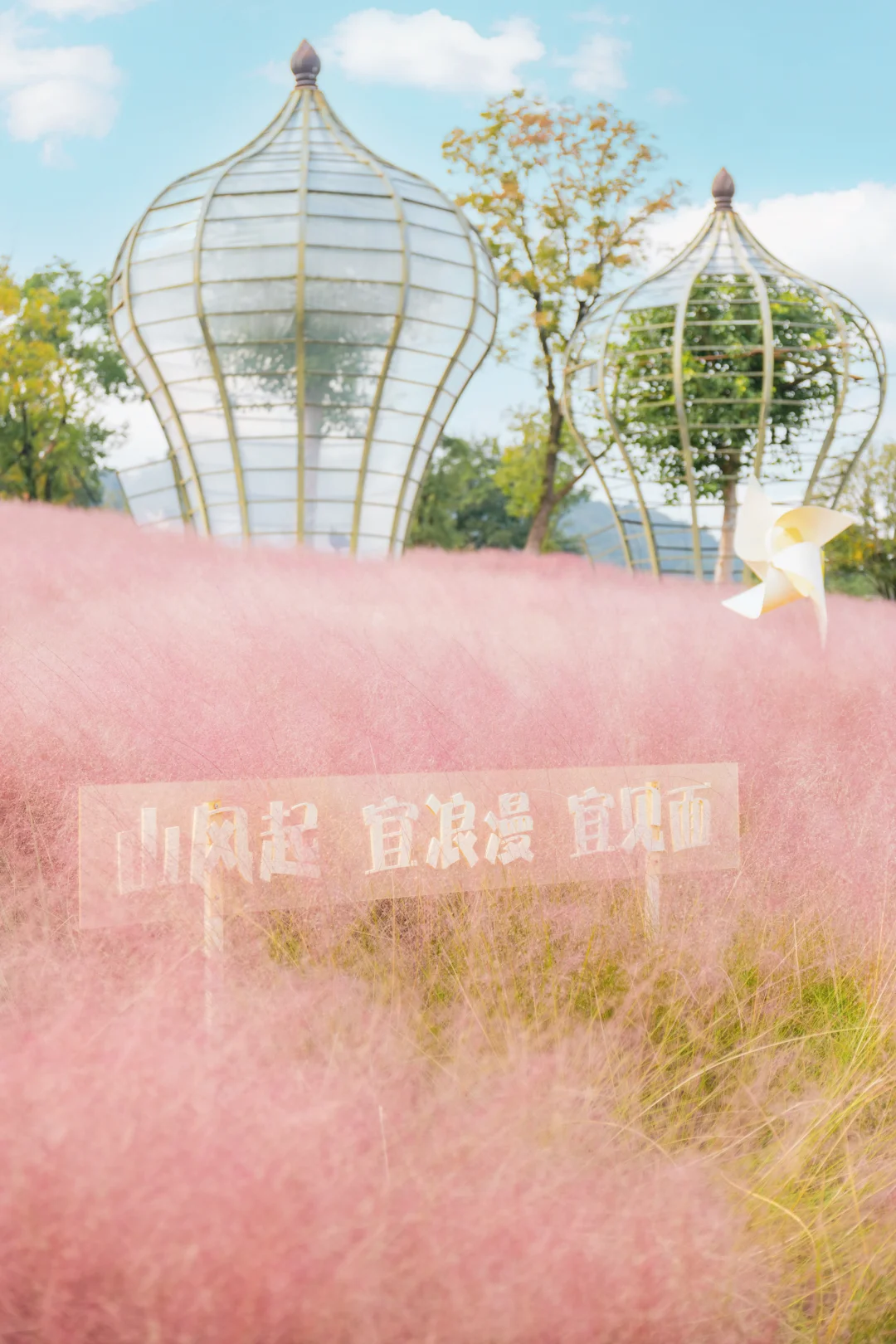这片粉黛乱子草真的是意外的惊喜!整整一大片粉色云雾,随手一拍都仙气十足。建议穿白色或浅色裙子,下午四点左右的光线最适合拍照,整个人都会笼罩在温柔的粉色光晕里~