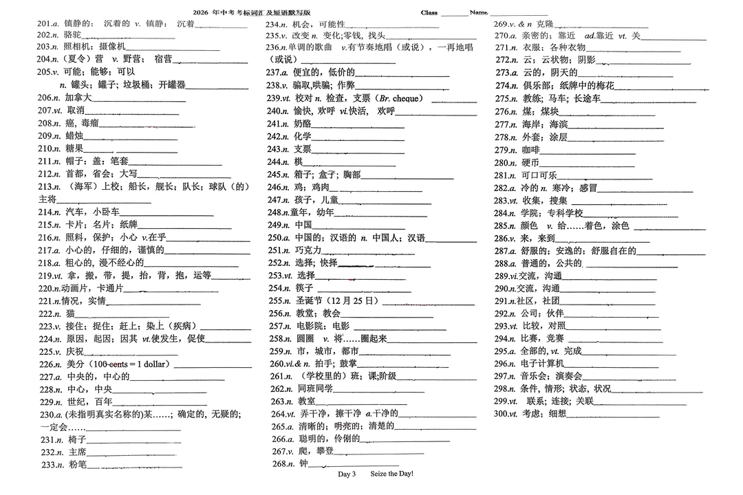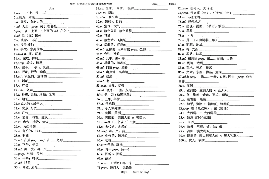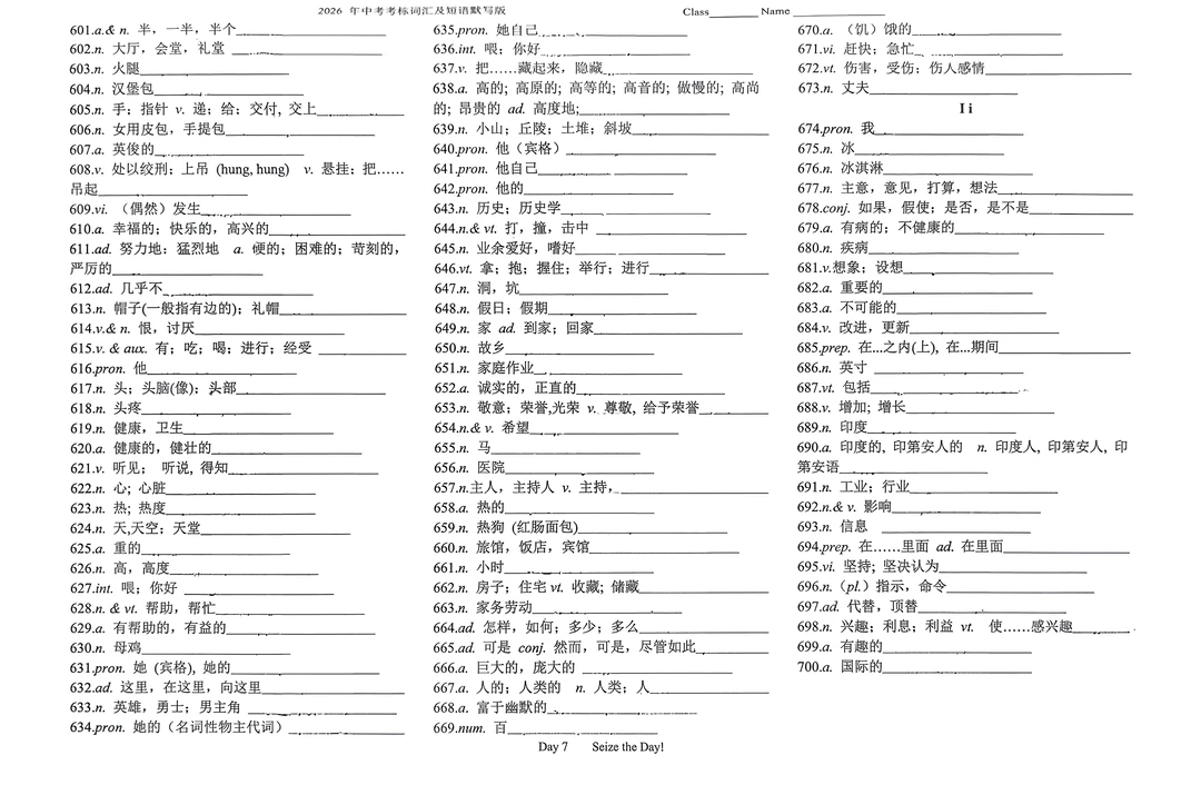 共 70 页 PDF 版,前 39 页是背记,后面 30 页是默写.也就是一个月的任务。这是长郡学校的一本默写本,拍照扫描的。因为有几页写了去手写以后会有一点痕迹,要求完美的就不要拍了,整体来说是一本很好的资料人教版 英语词汇 中考词汇及短语中考考标词汇及短语2026 年中考英语