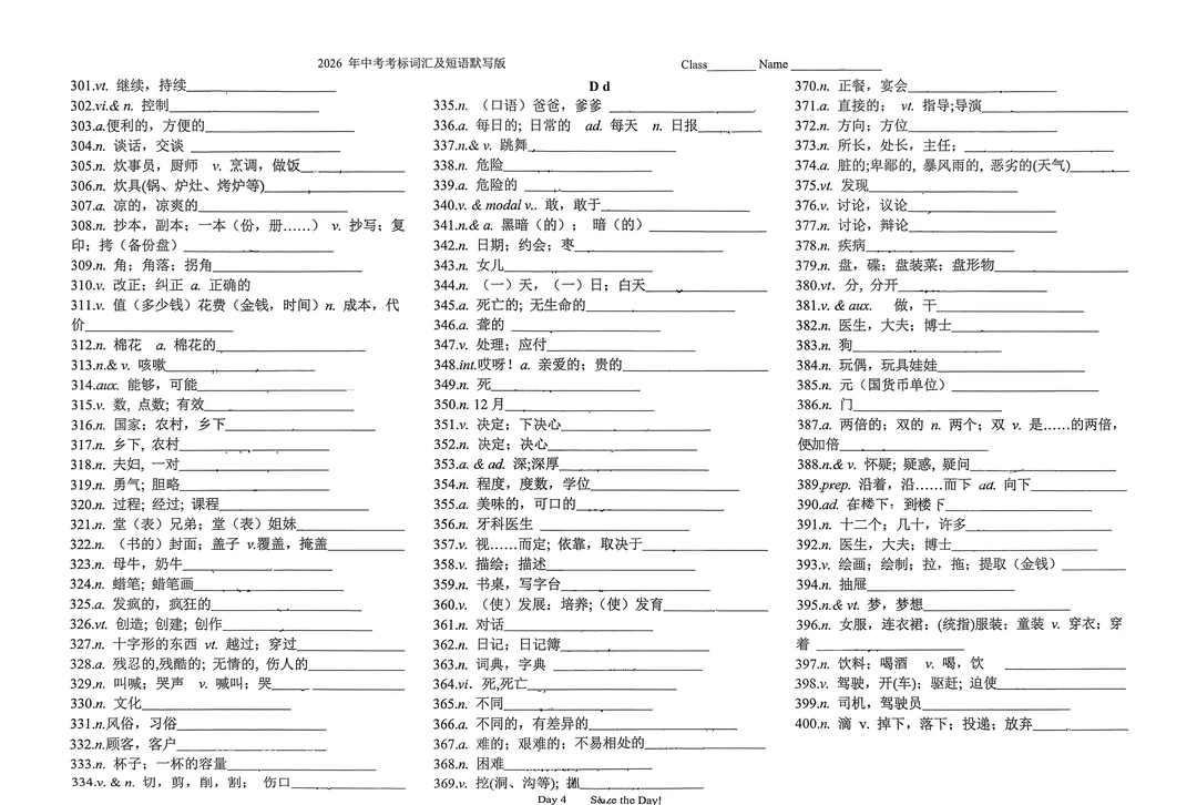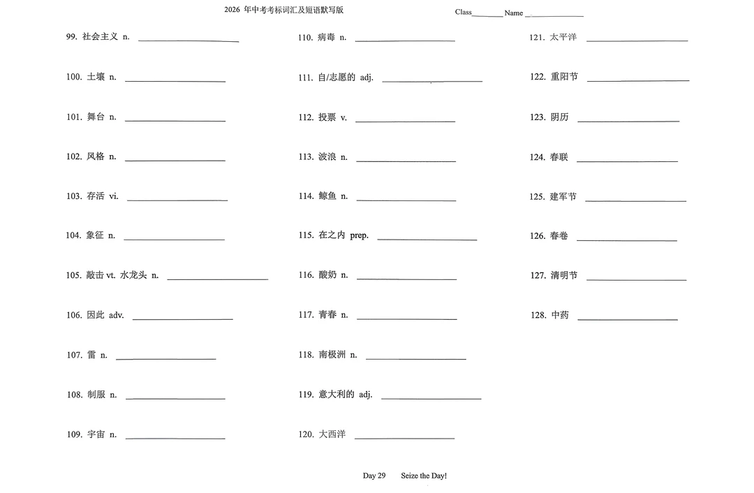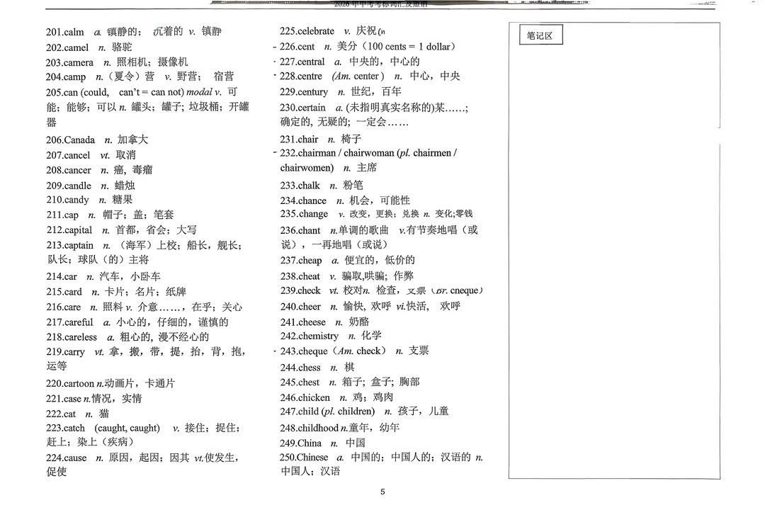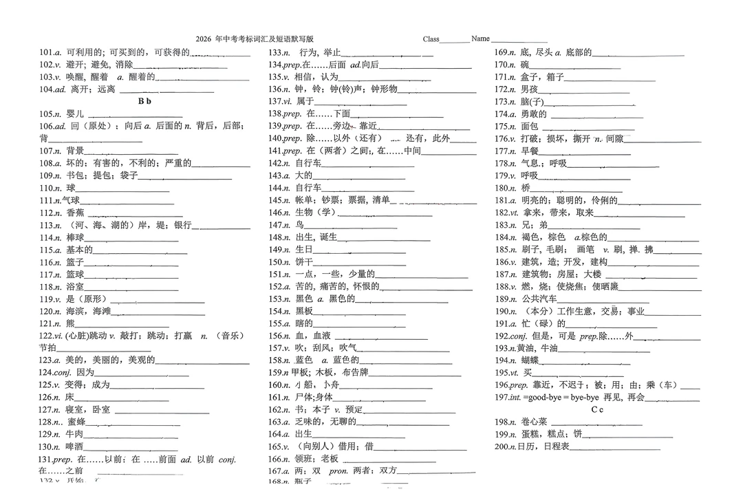 2026年英语中考考标词汇及短语