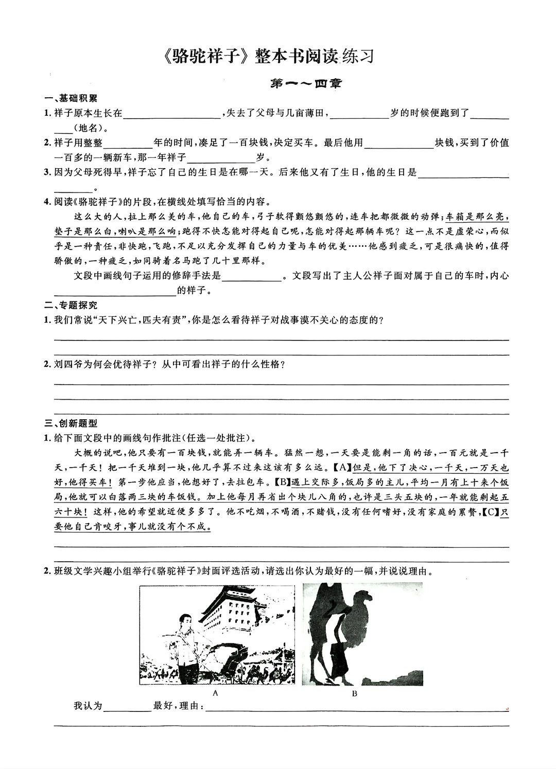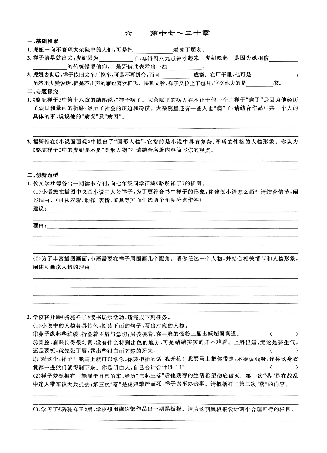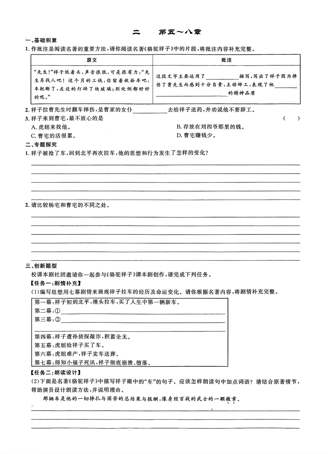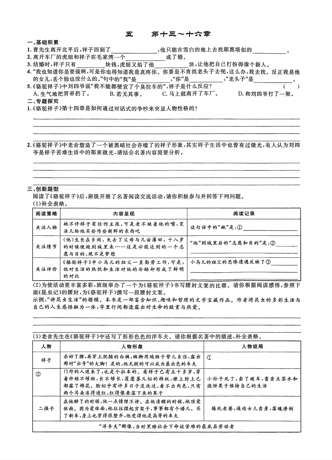 名著阅读练习骆驼祥子等(填空版)