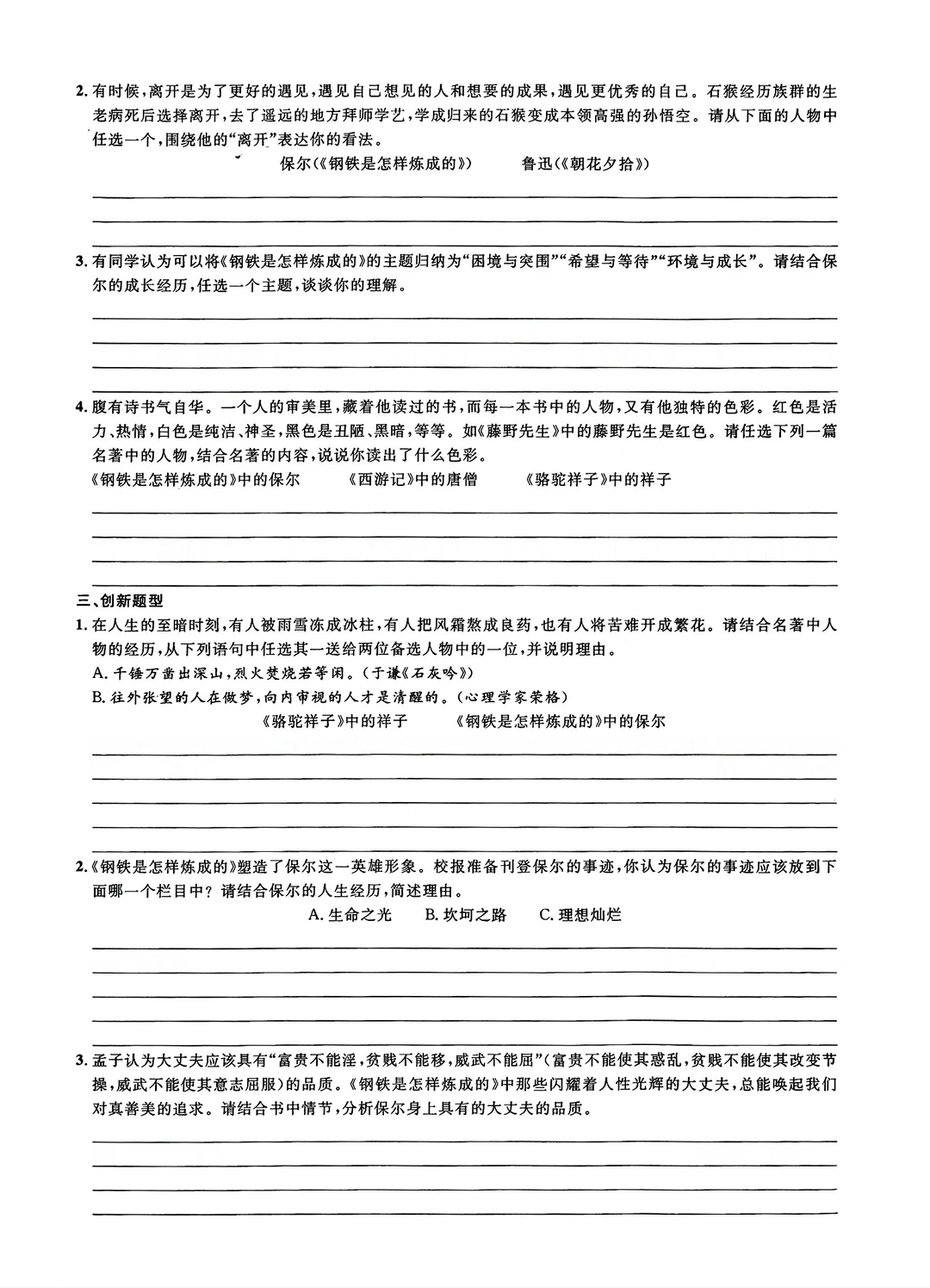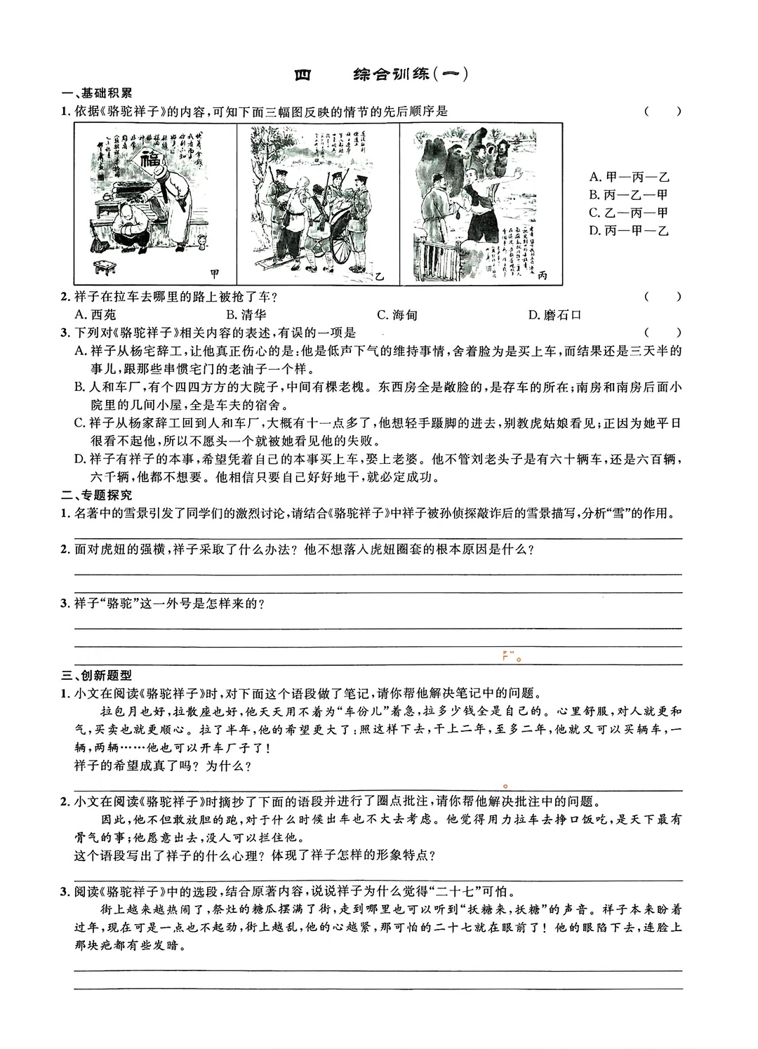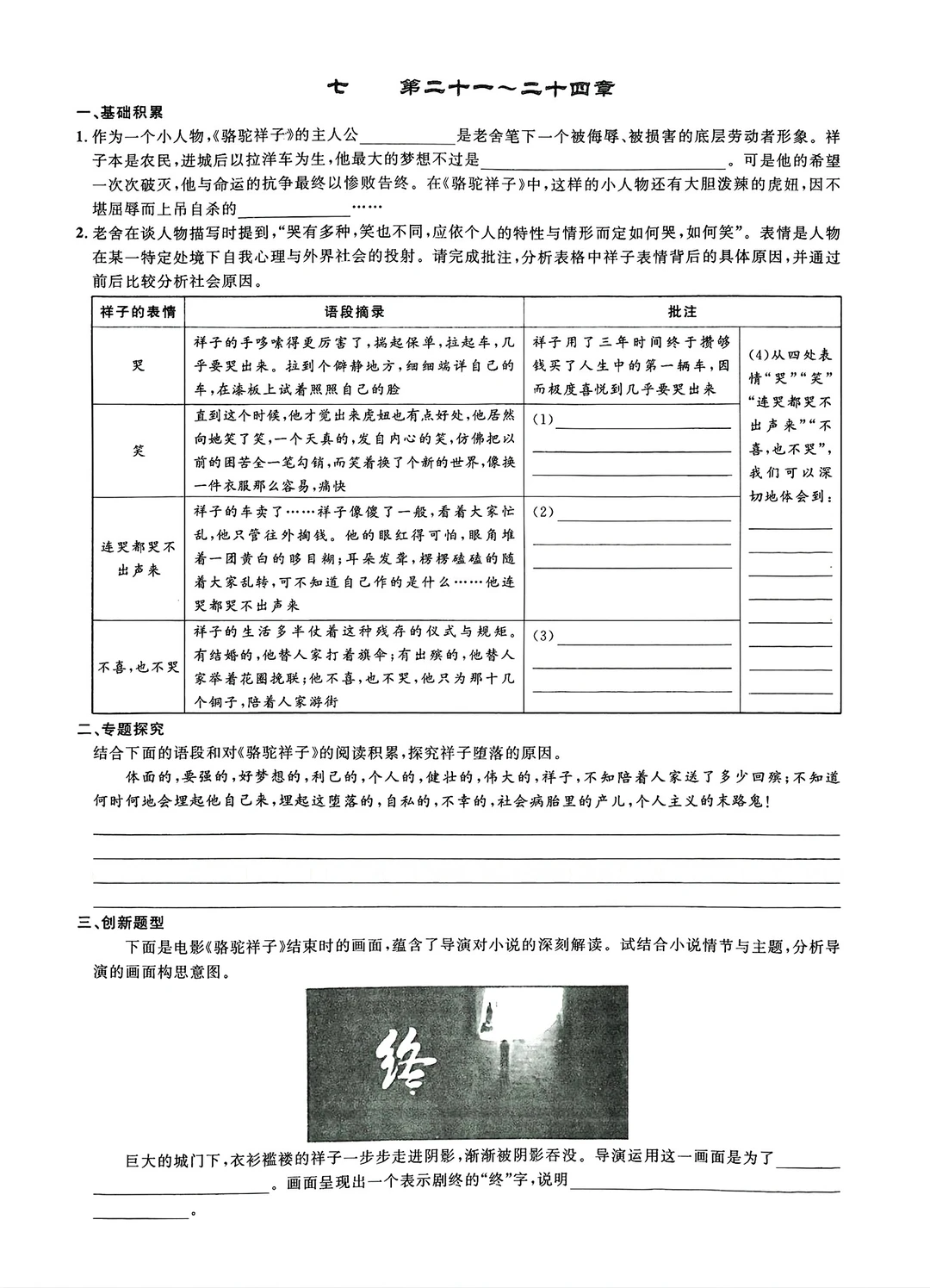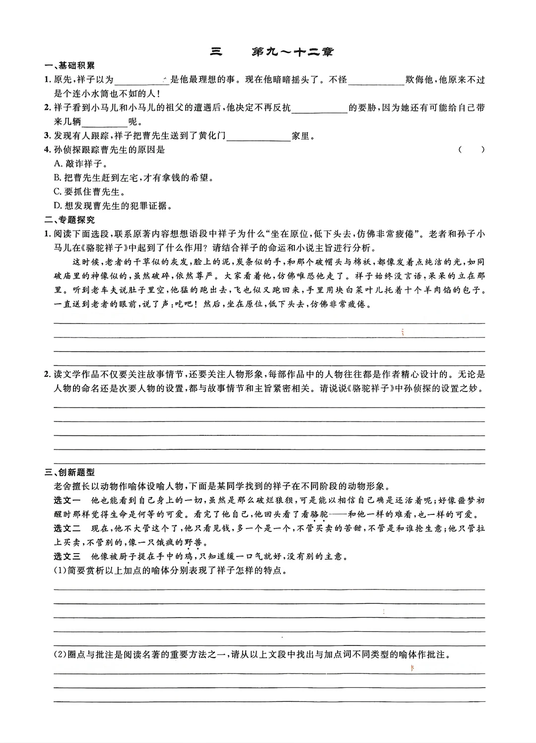 名著阅读练习骆驼祥子等(填空版)