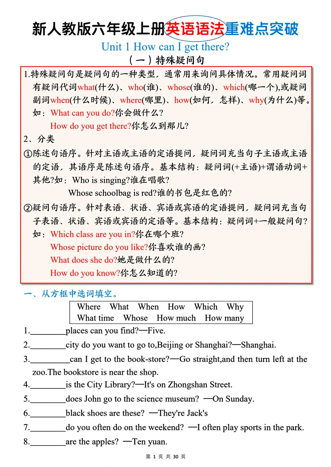 六年级上册英语资料包语法等