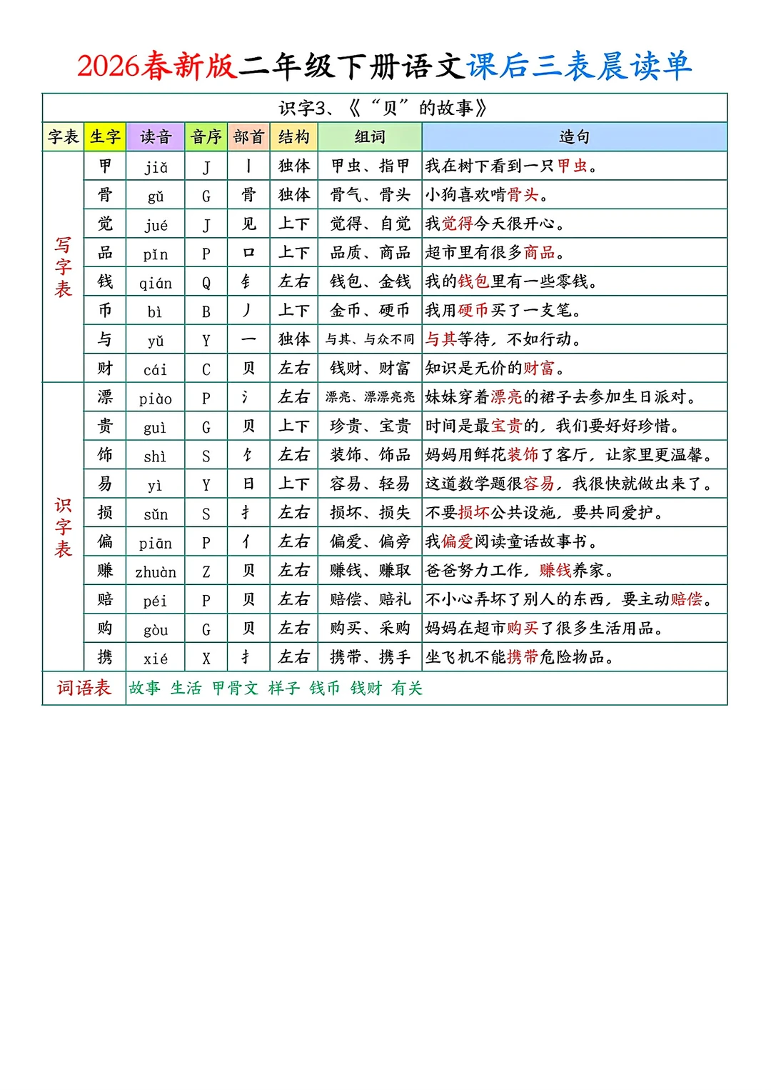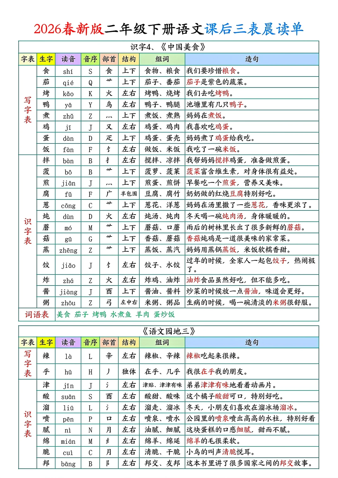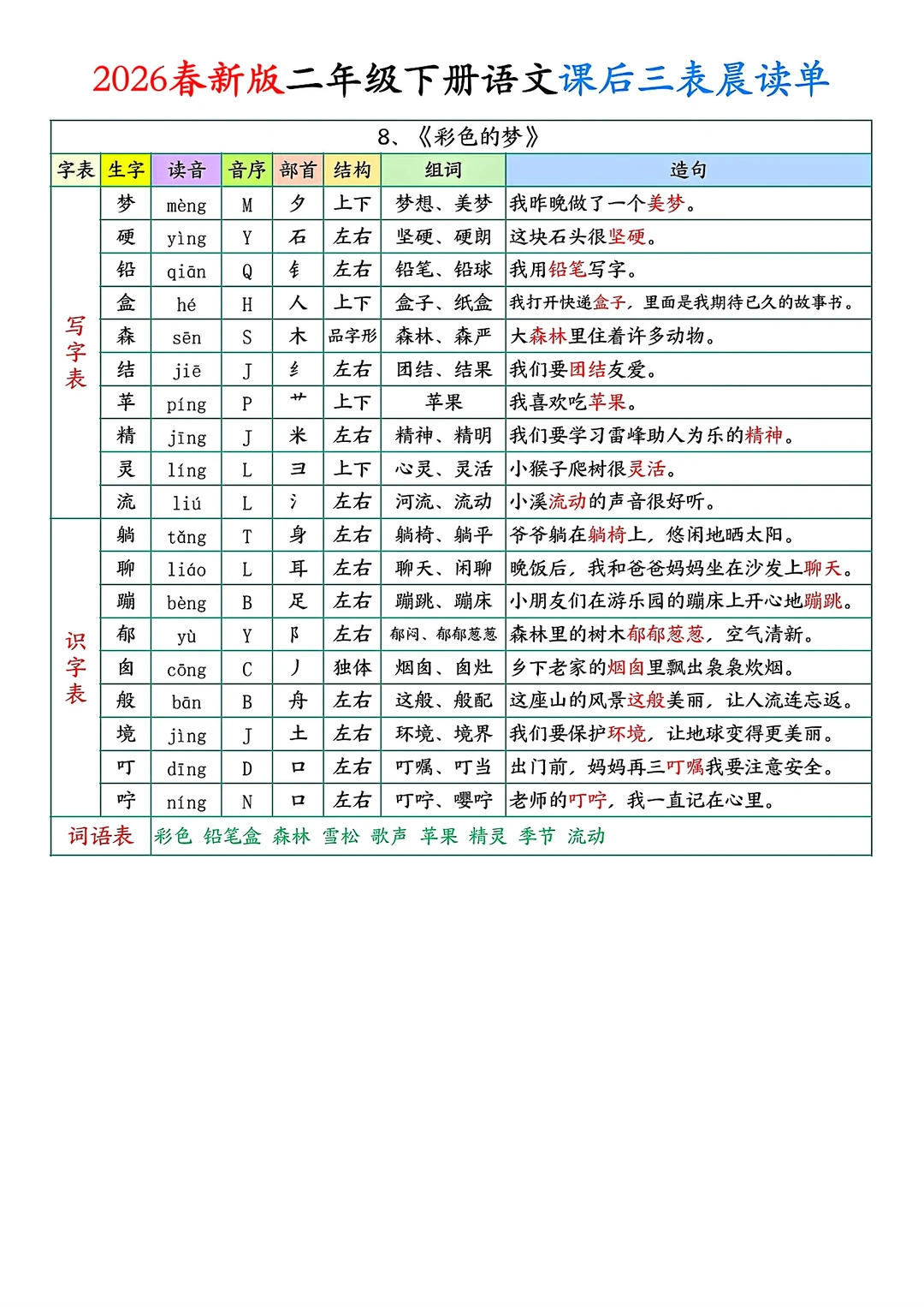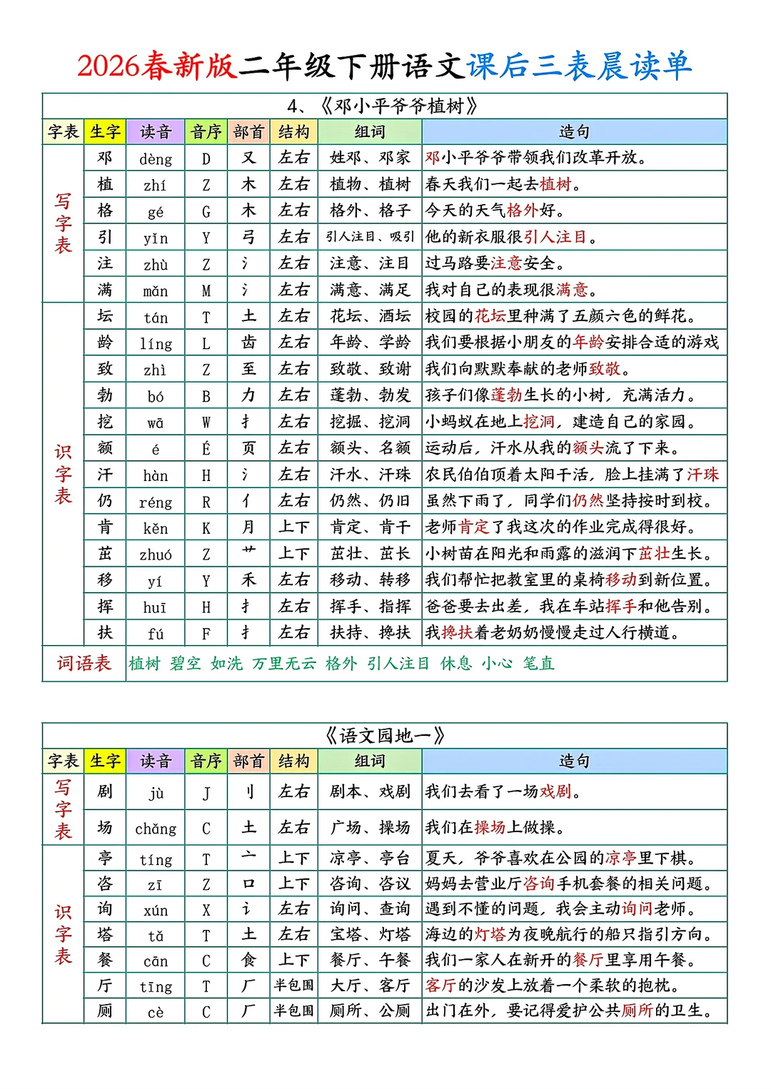二年级下册语文课后单