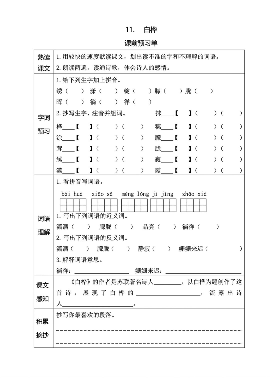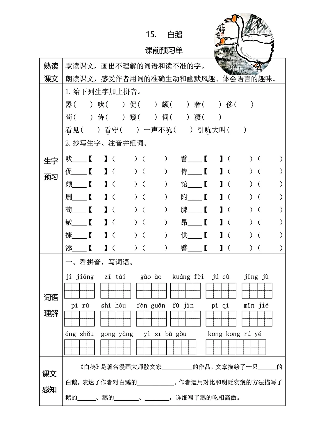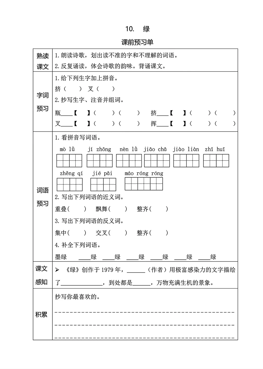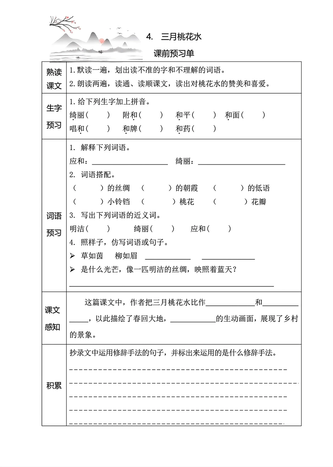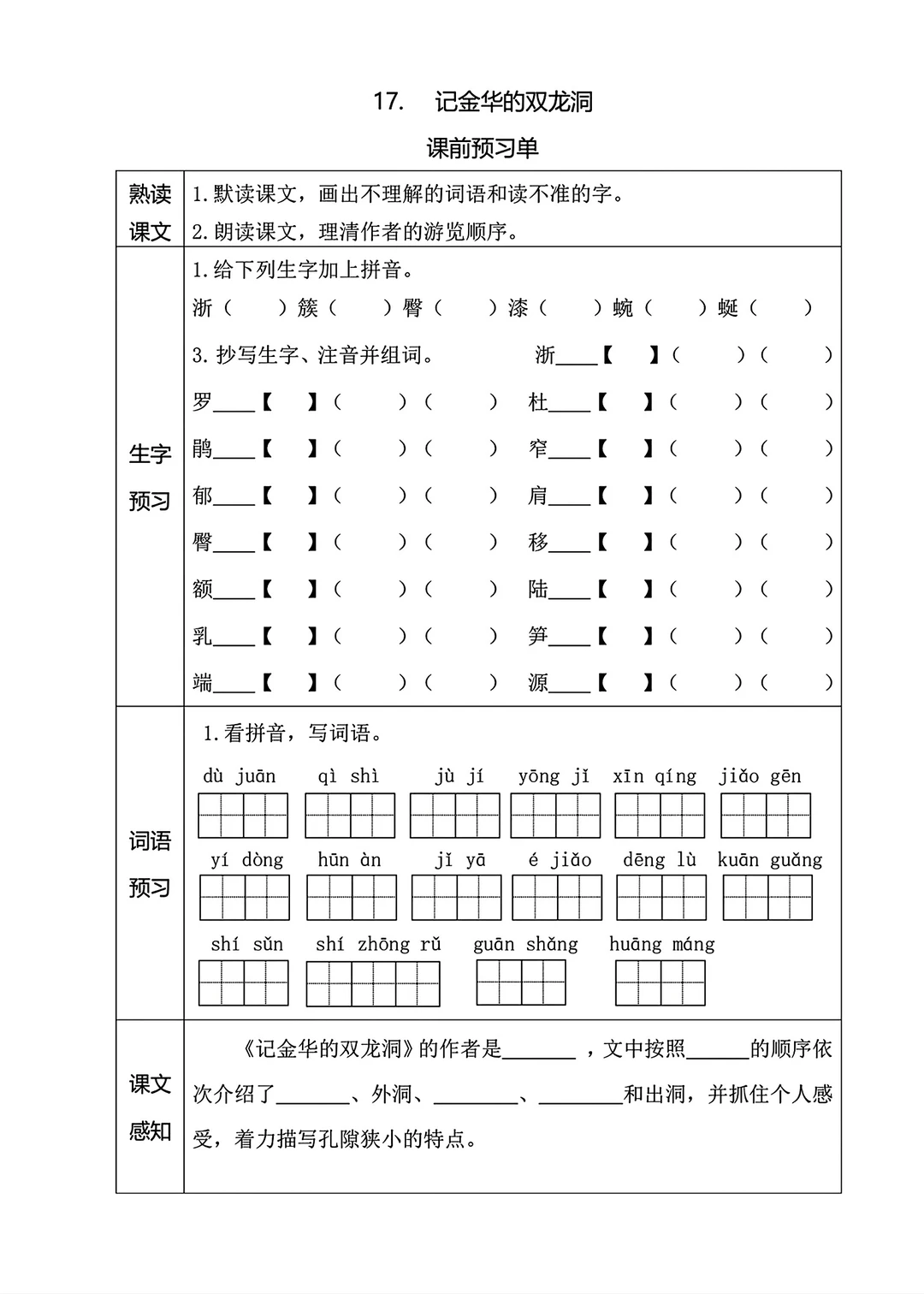 共17页。 Pdf,刚收到的。要求全班打印的。挺好的一份资料人教版 四年级下册语文预习