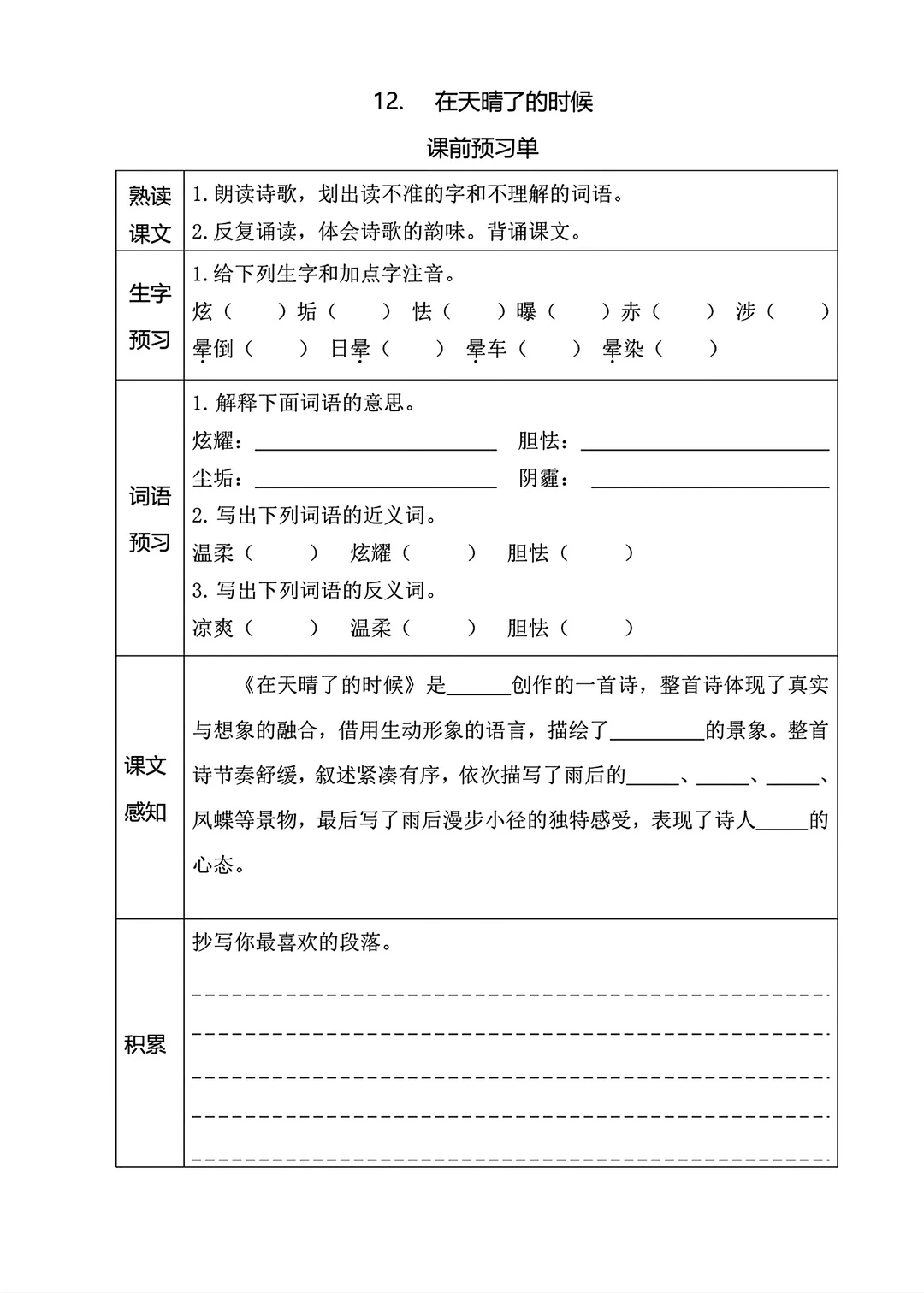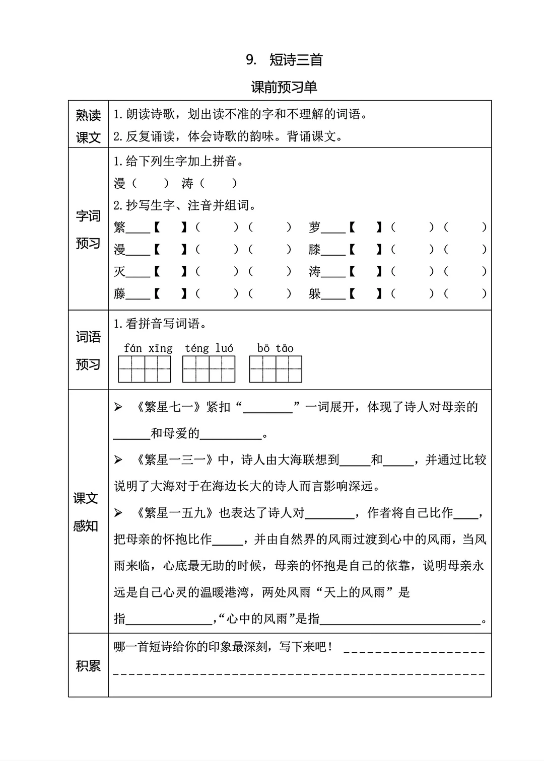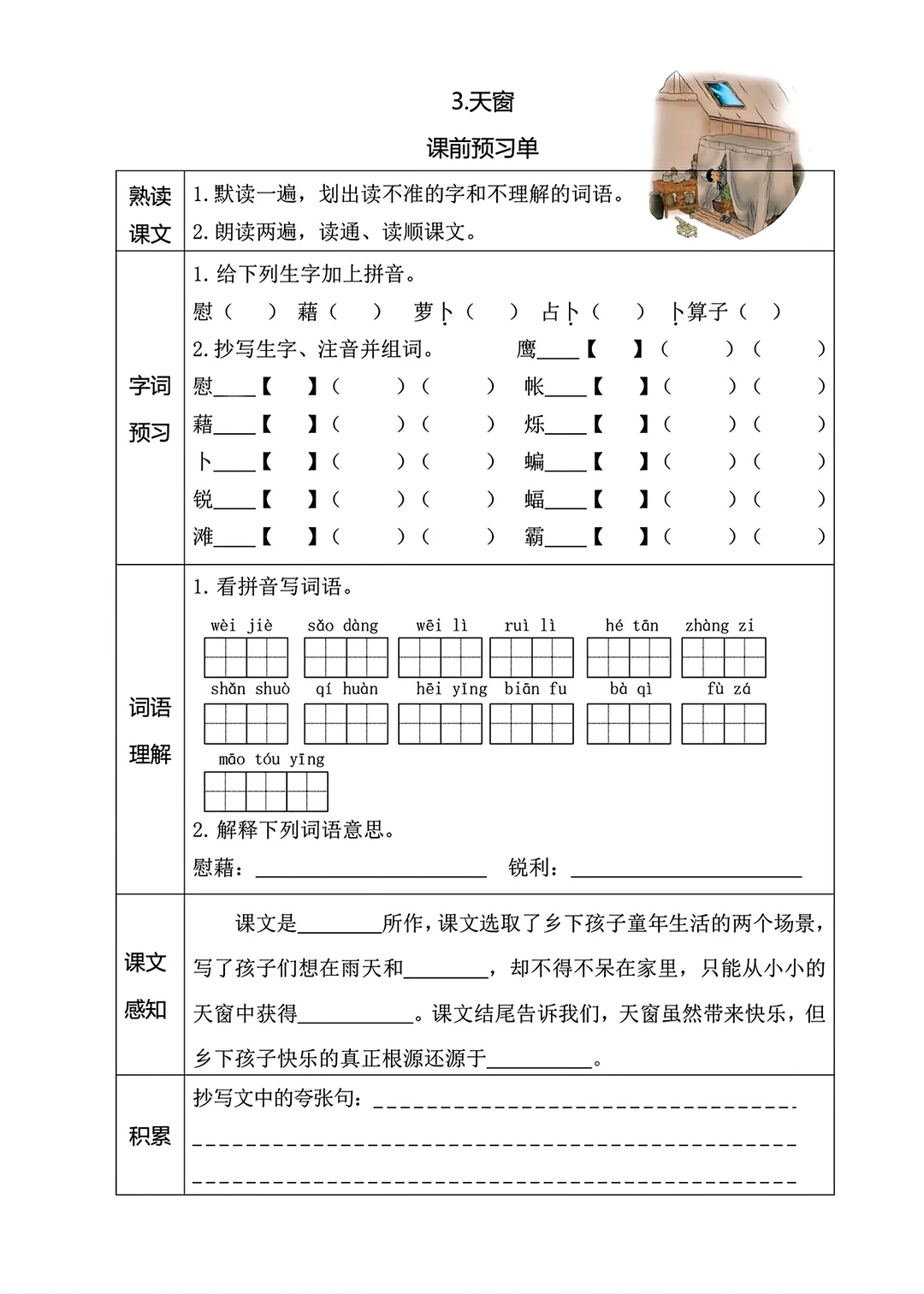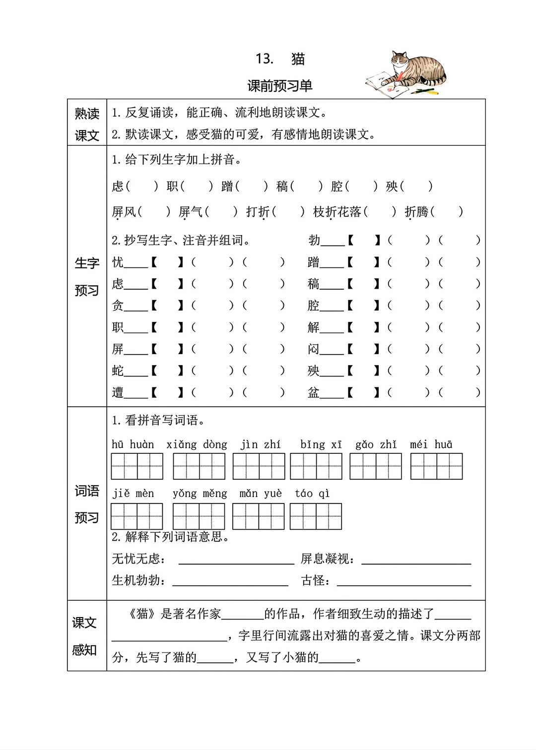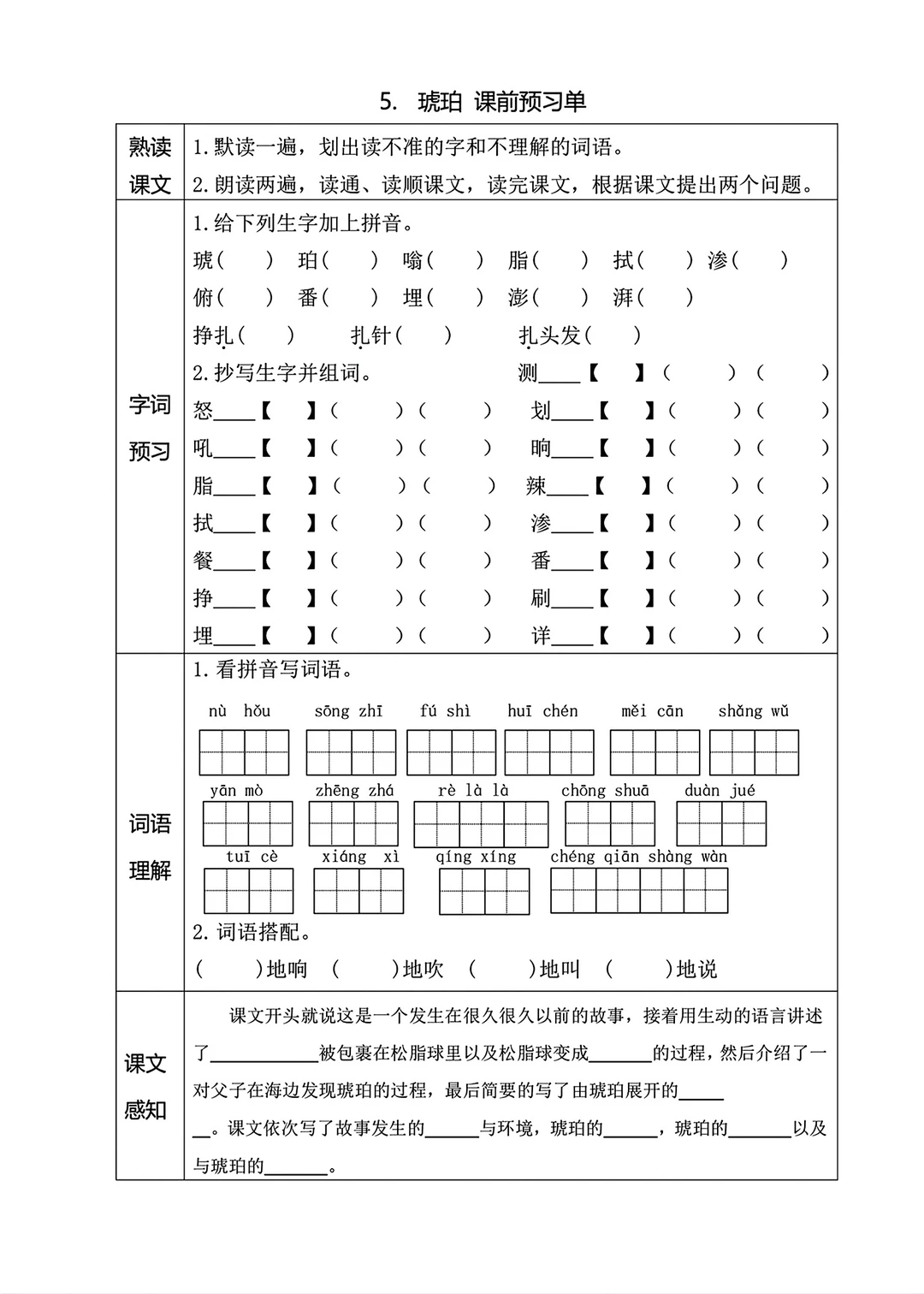 共17页。 Pdf,刚收到的。要求全班打印的。挺好的一份资料人教版 四年级下册语文预习
