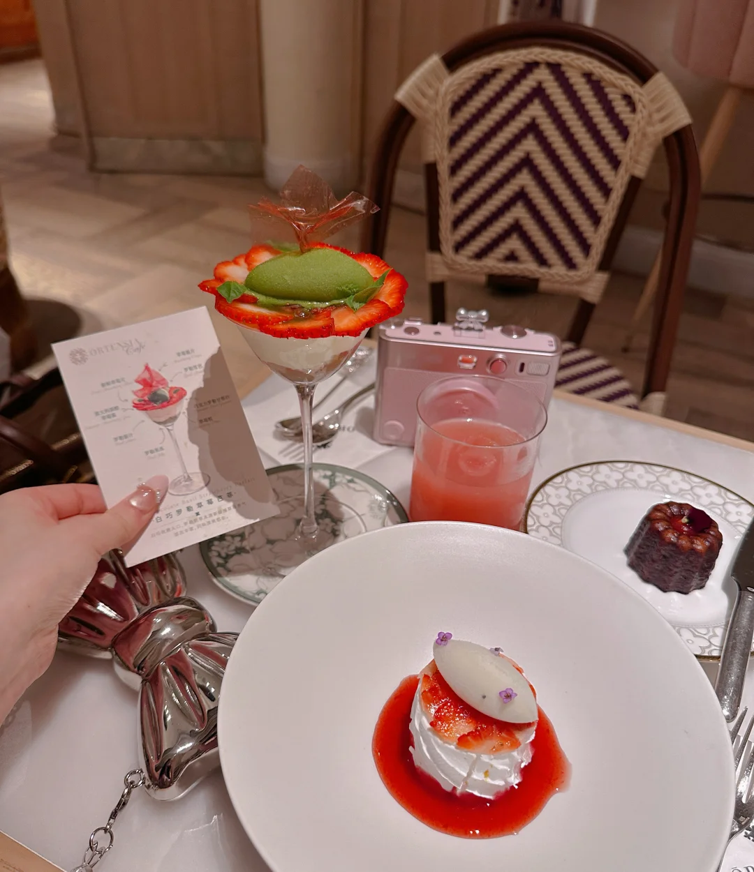 这家甜品和饮料不能单点,只能点双人套餐和三人套餐属实是捆绑消费了,甜品都比较偏酸口,芭菲杯很小,如果要拍照的话最好让他最后上,因为它会融化。另外这家店不让开闪光灯拍照。