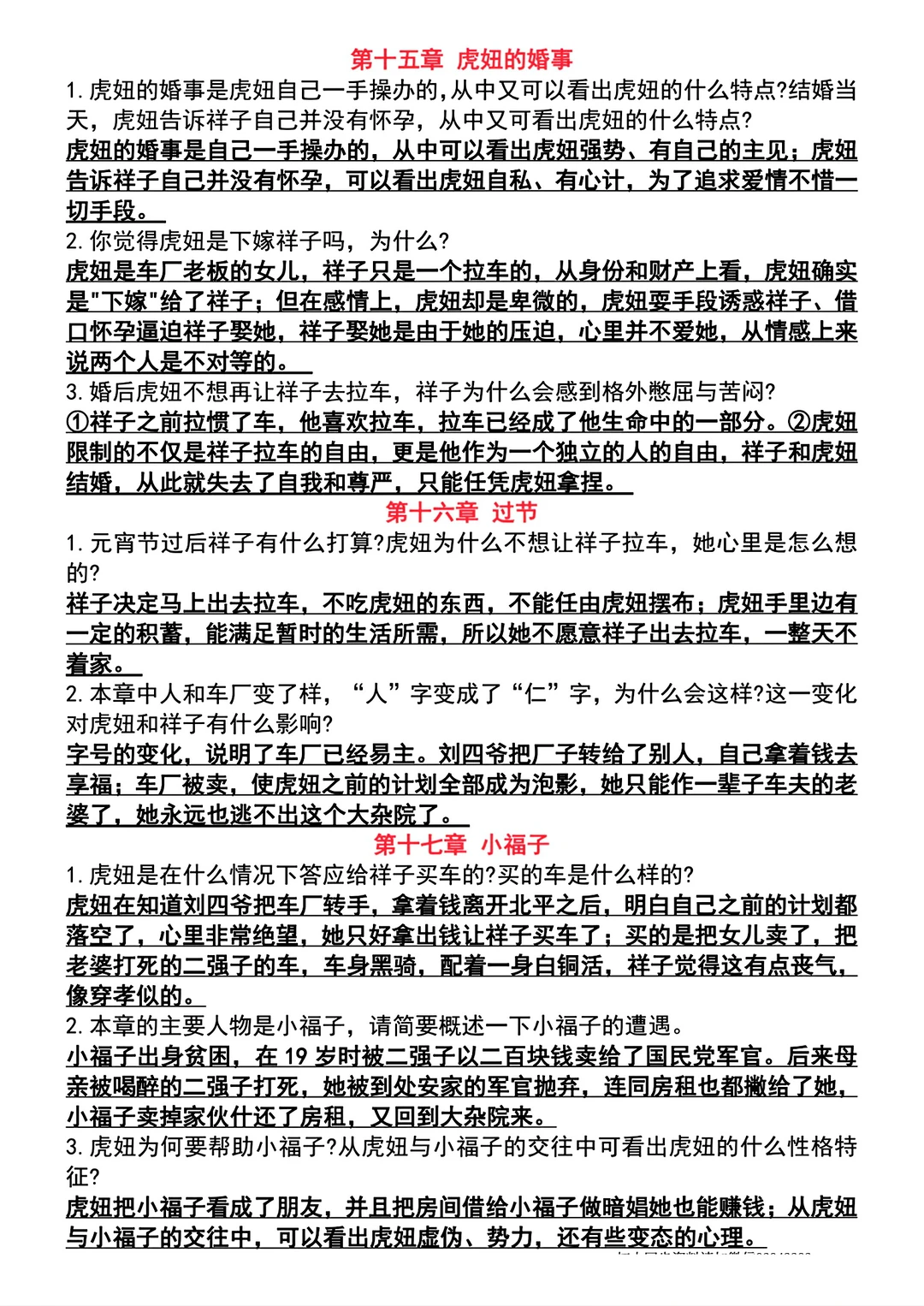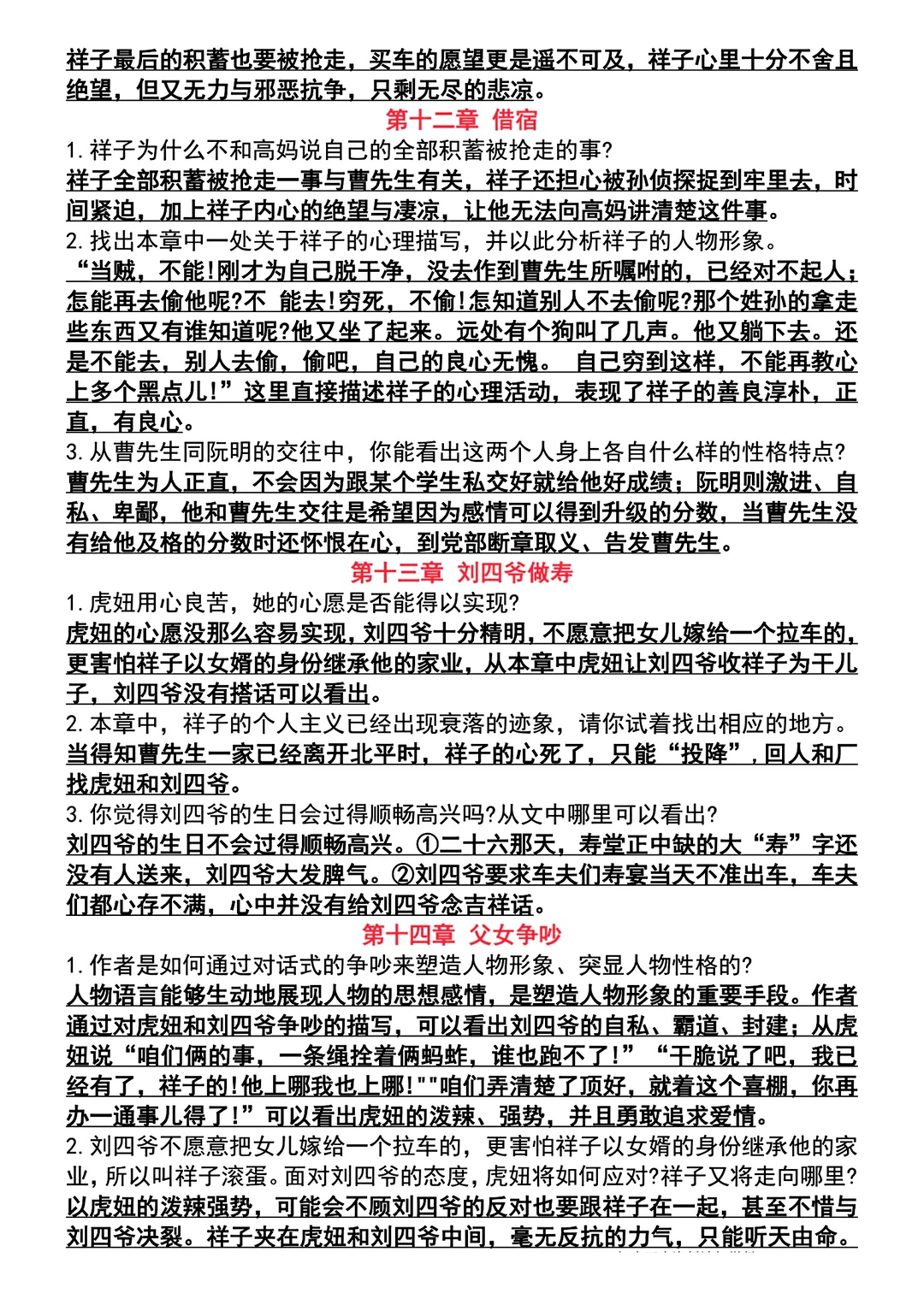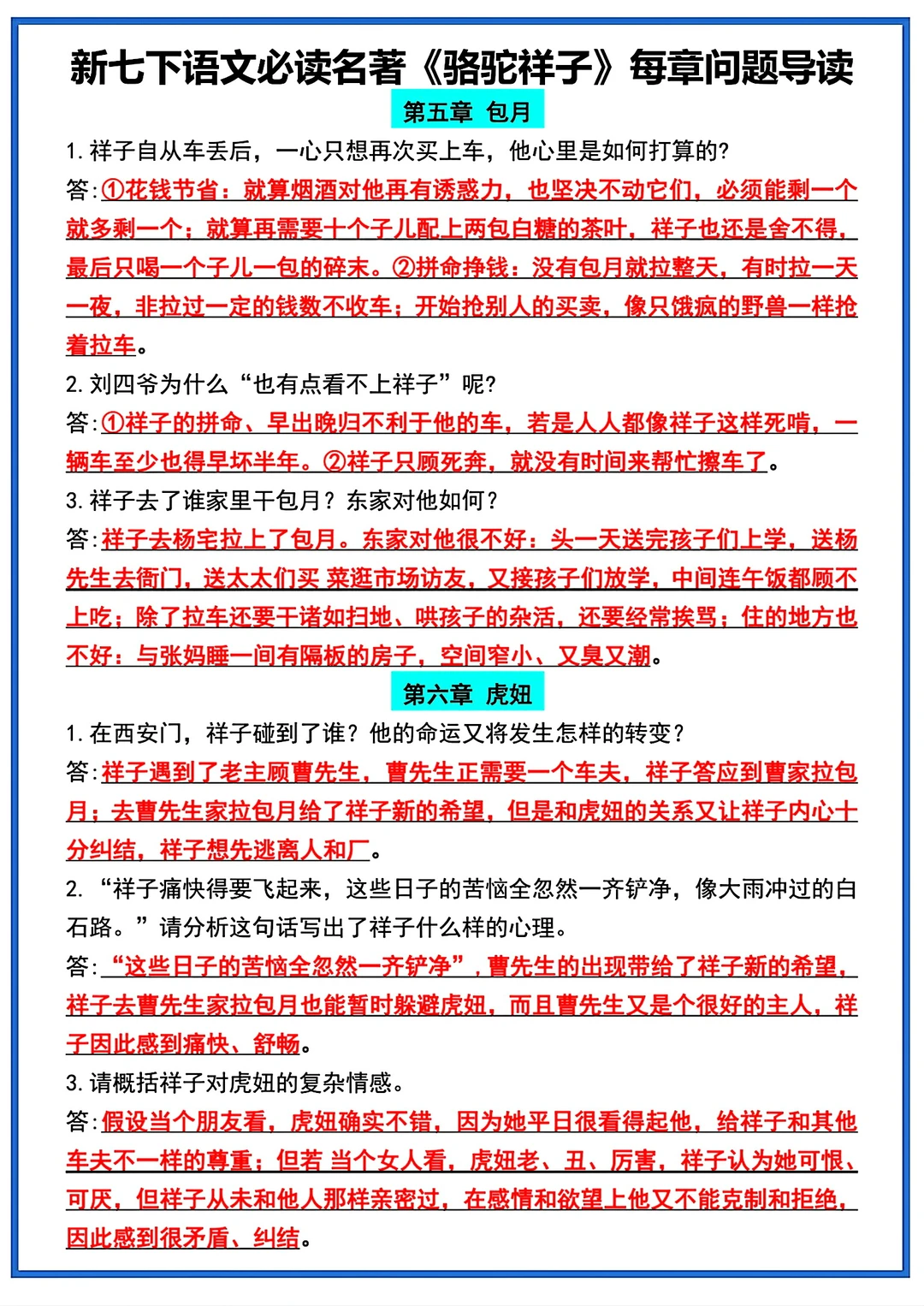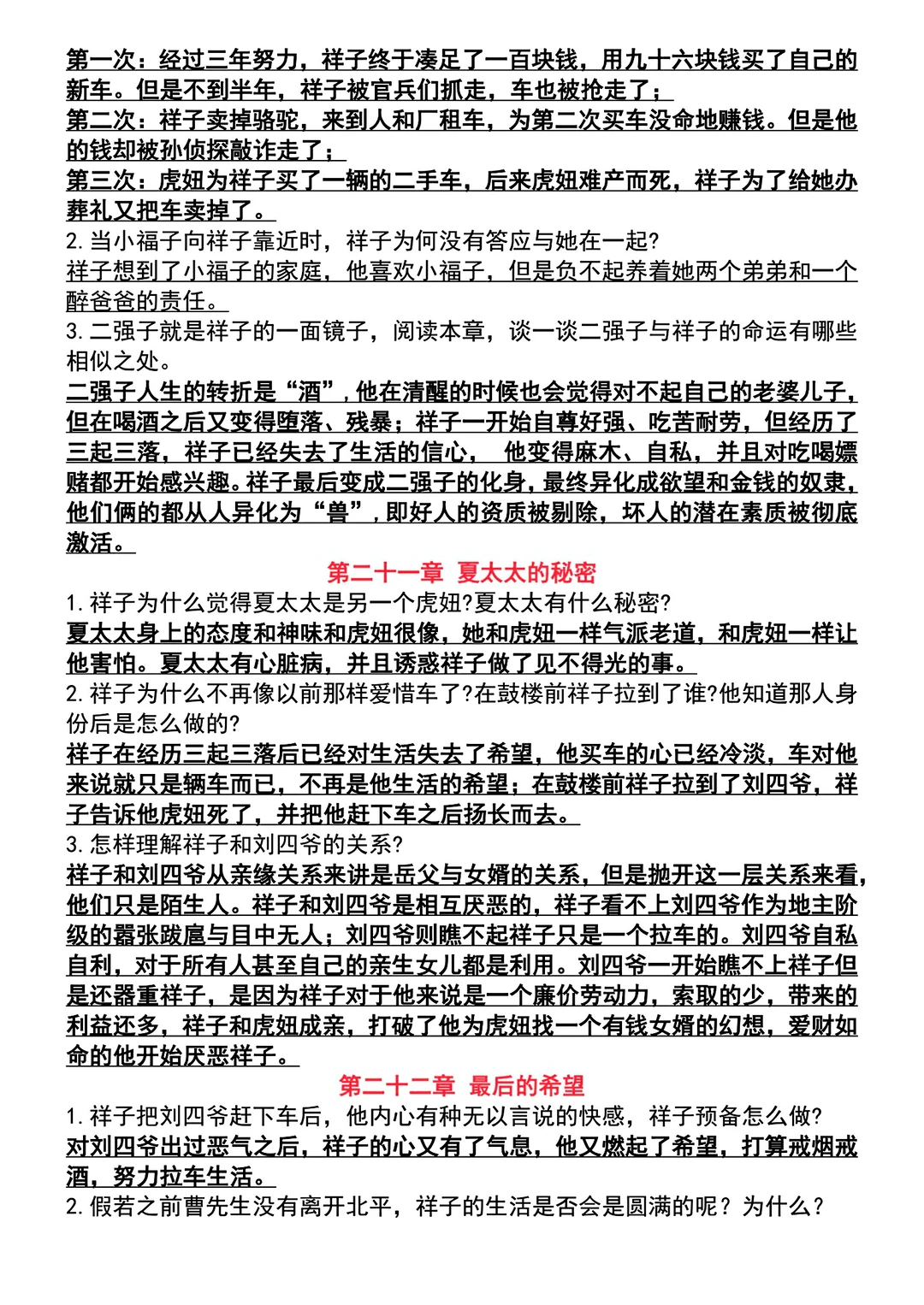 新七下语文必读名著《骆驼祥子》每章问题导读,共十页,