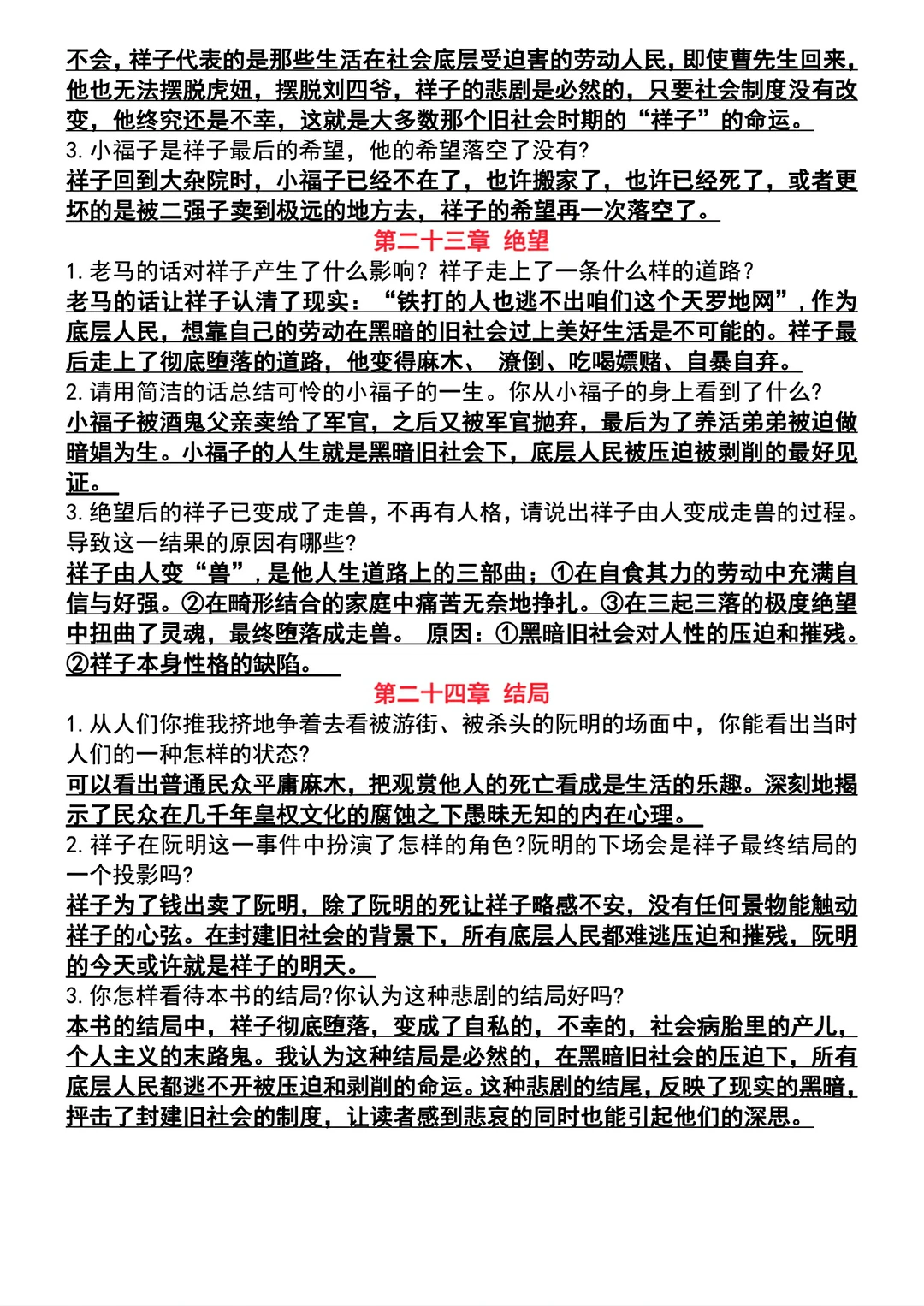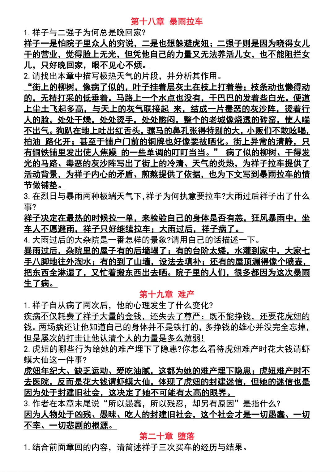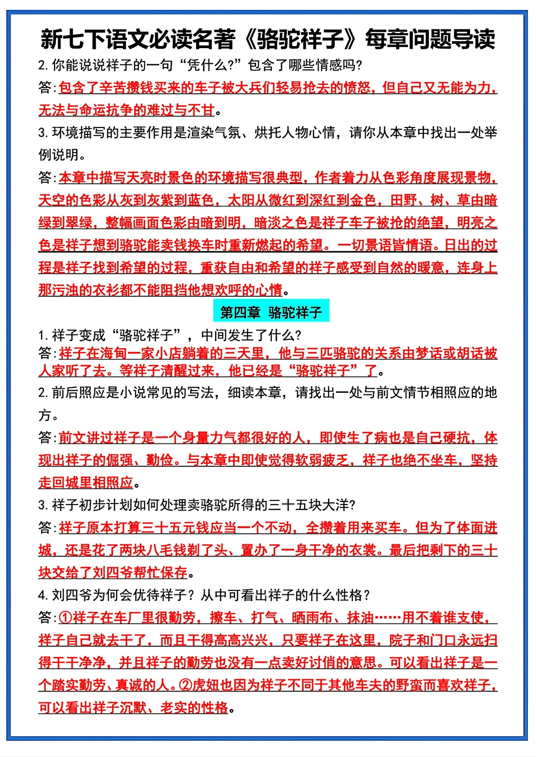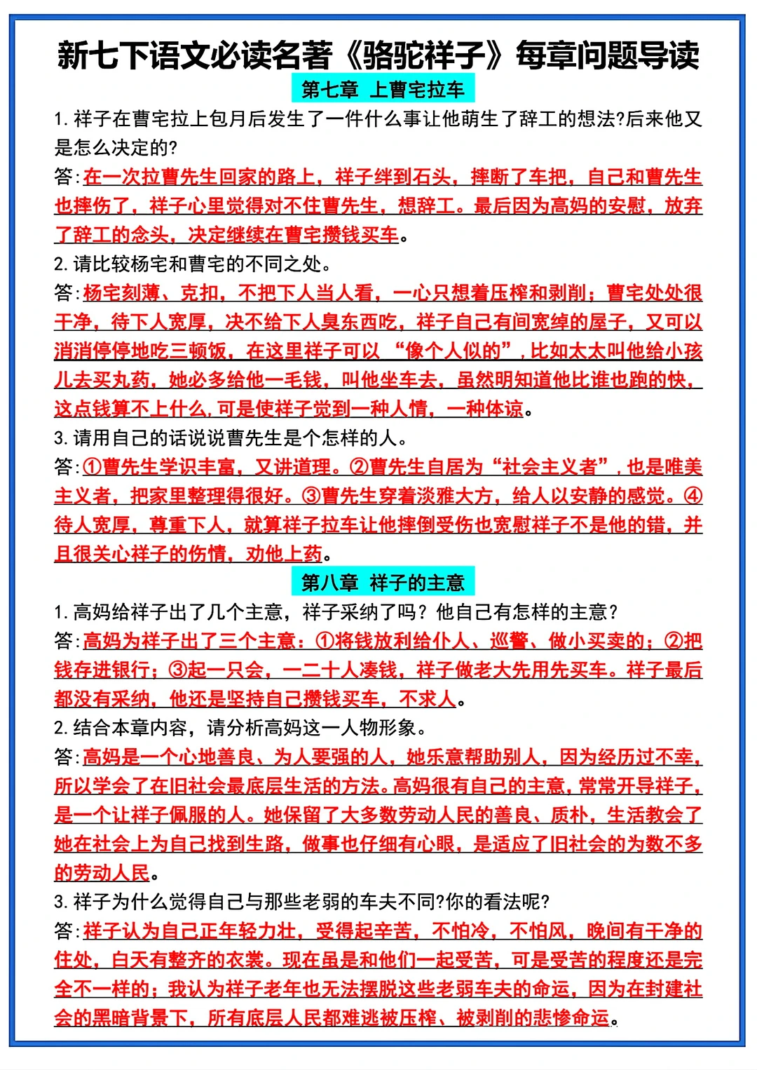 新七下语文必读名著《骆驼祥子》每章问题导读,共十页,