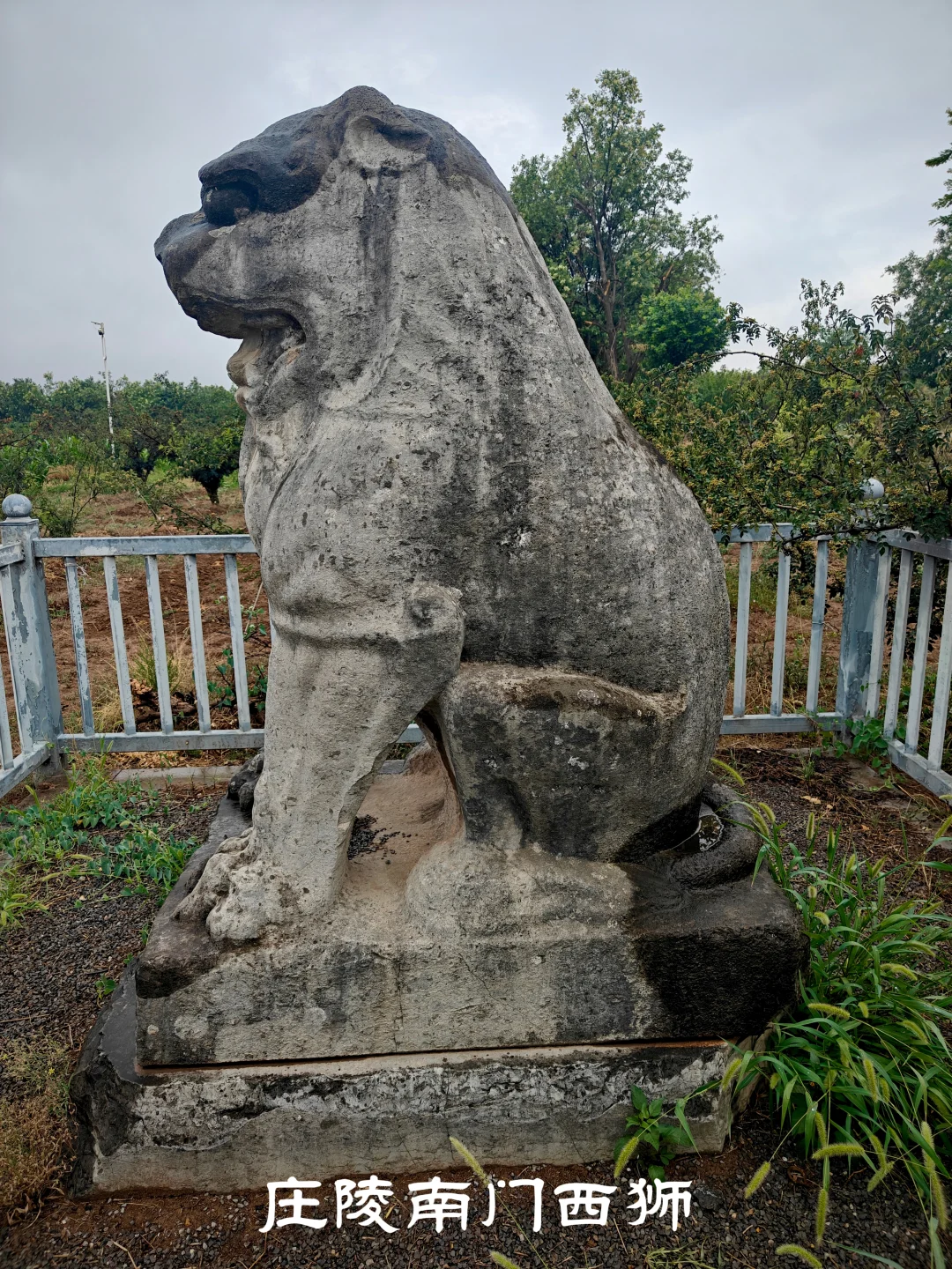 唐朝帝陵四门外各放置一对石狮,共四对八只。庄陵8只石狮俱存,为目前关中唐十八陵中,唯二石狮全部原址保存的帝陵(另一座为唐睿宗李旦桥陵)。