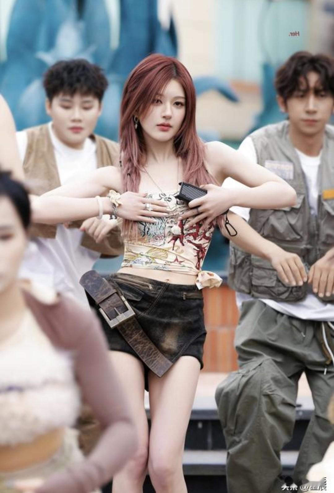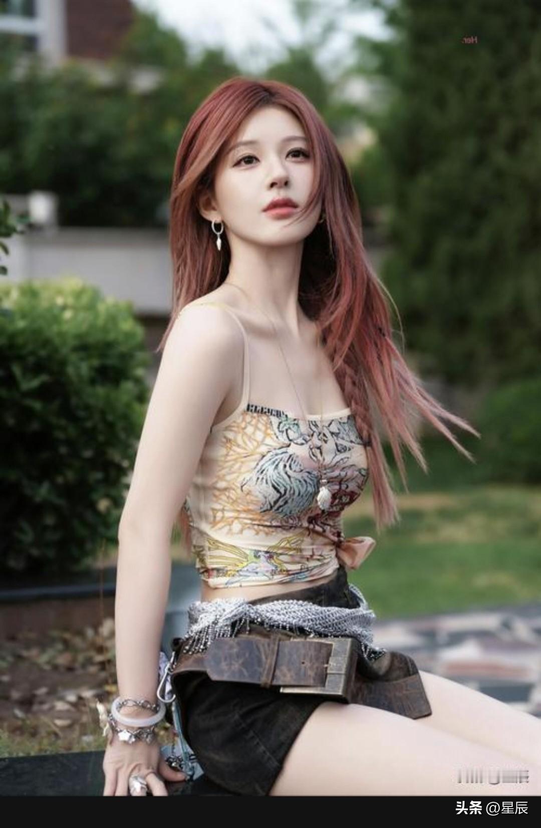 像她穿的卡其色长袖针织毛衣配白色阔腿长裤,宽松日常又温柔甜美。蓝色露肩针织上衣搭吊带内衬,小清新中带点小性感。粉色很适合她,搭牛仔外套,配粉黑拼接单肩包,青春洋溢。