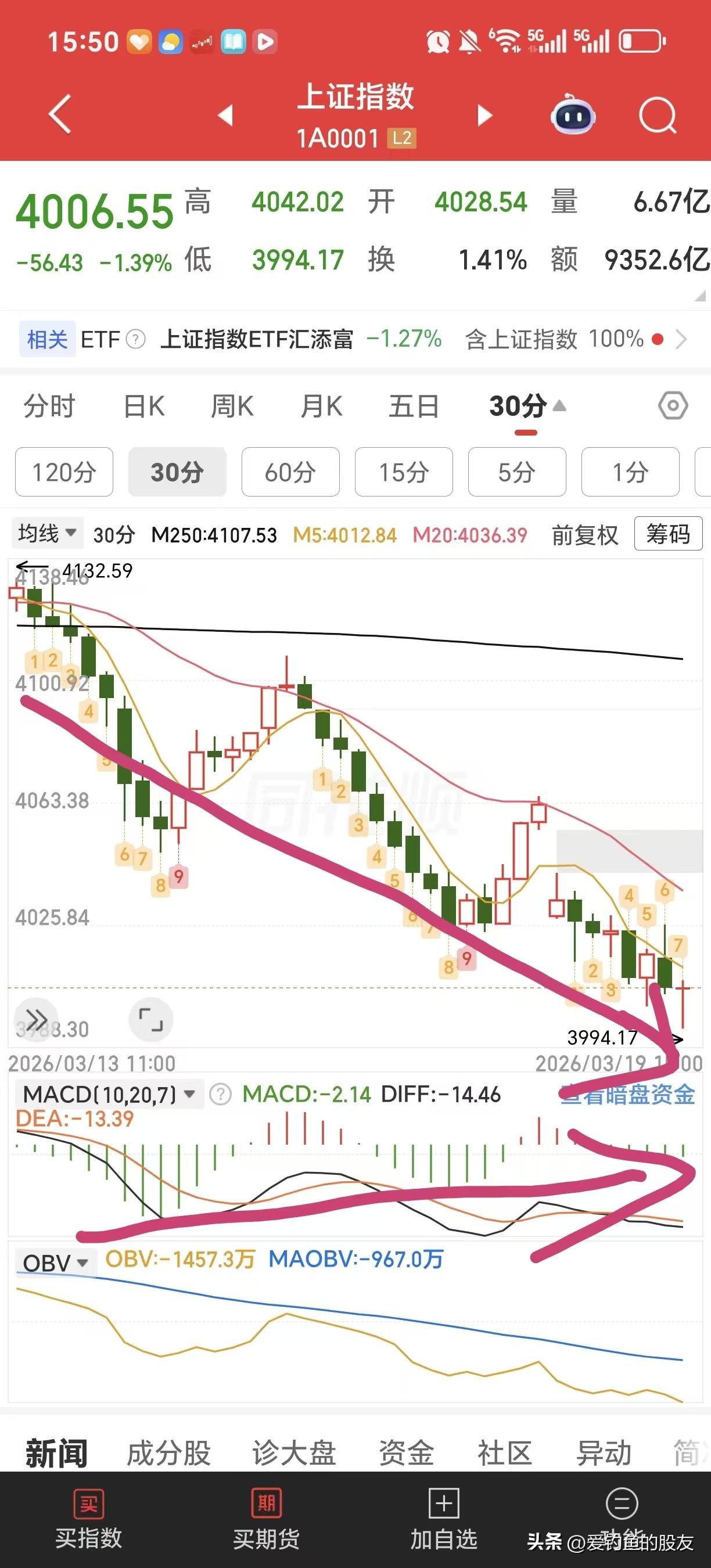 今天先说一下我对明天大盘的看法,明天大盘(上证指数)应该还会有一个下跌的过程应该要去3850点去寻底,然后才会有一次像样的反弹。从图二,图四可以看出30分钟15分钟的MACD指标都已经出现底部背离,反弹一触即发但是图一可以看出指数今天尾盘10分钟保住4000点,说明有人在此抄底,但是明天个人认为明天下跌在早盘还会继续,探底3850点。今天尾盘去抢筹的板块主要是顺周期品种,比如油气板块和化工板块。