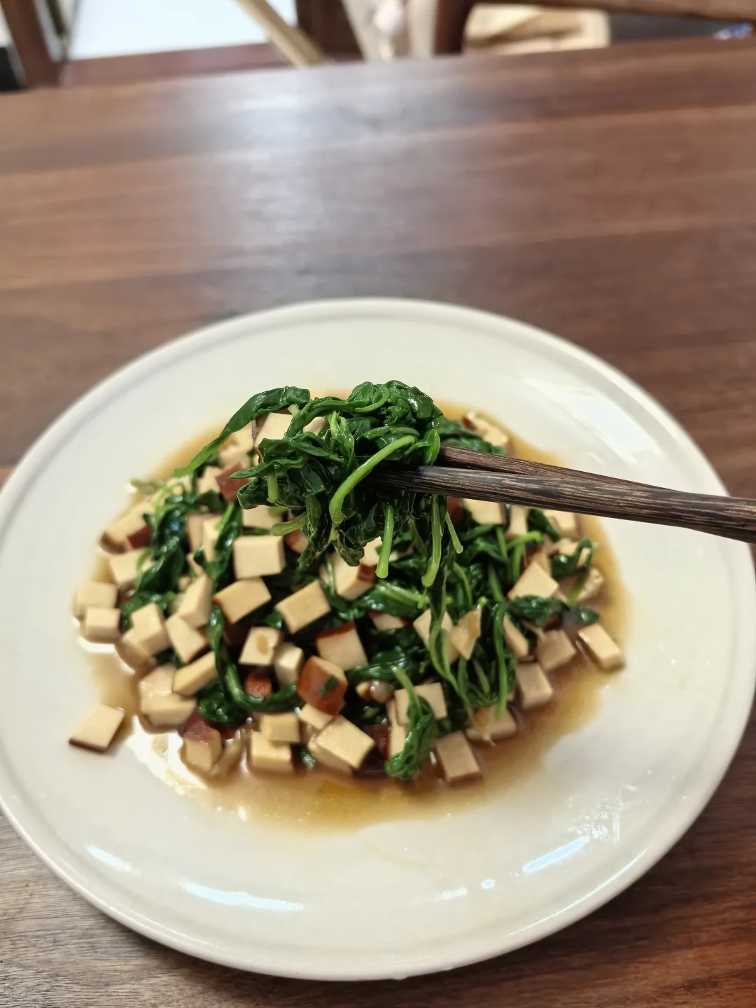一直想试试汪老笔下的枸杞叶拌香干,汪老果然没有骗我,果然好吃,打开了味蕾的新世界!