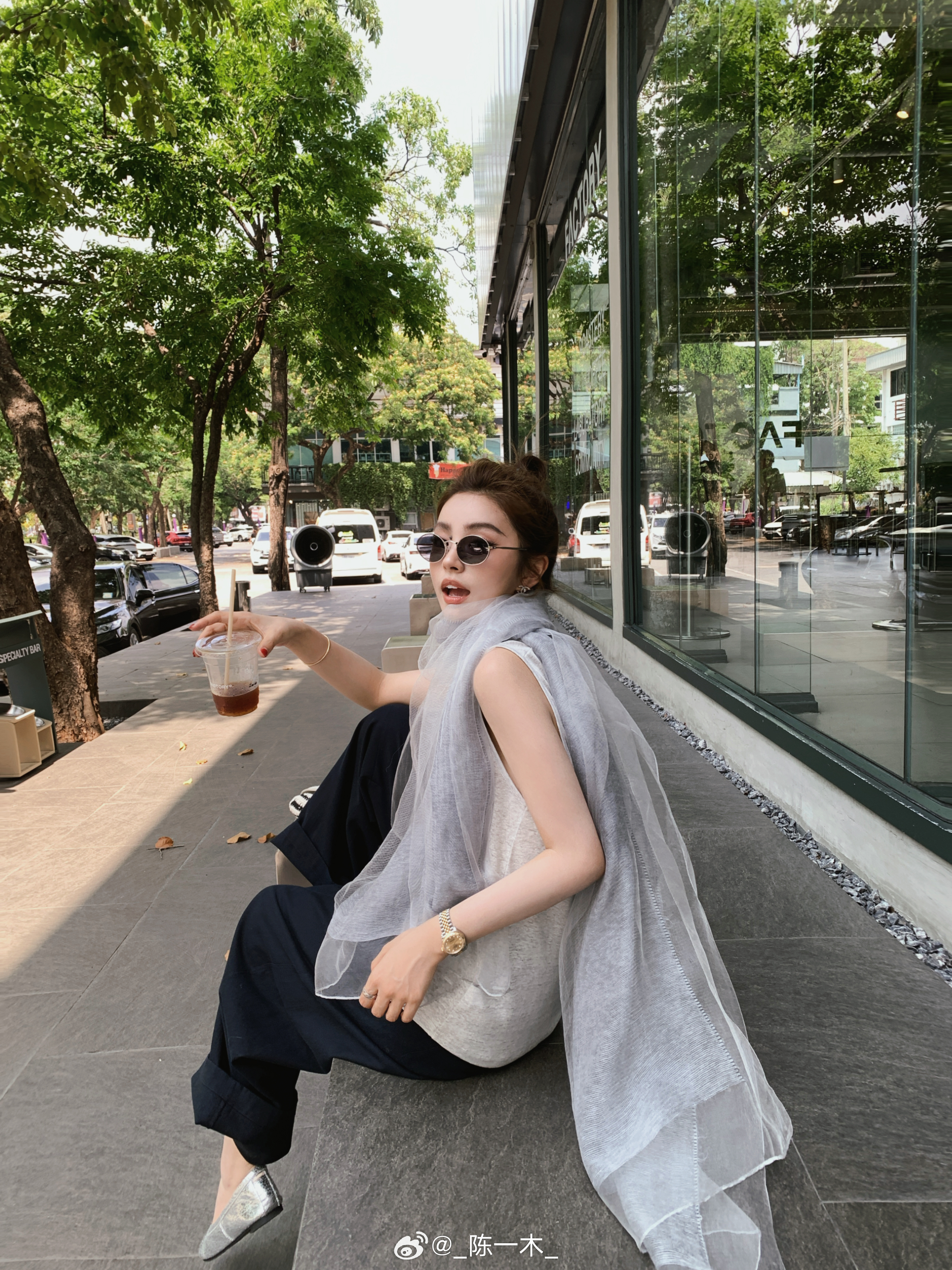 还是热乎的来咯超级喜欢的一套!!!边拍边跟我郭摄说这套太好穿啦丝巾一戴时髦博主感 素版背心穿着也很清爽 亚麻的质感 一套穿下来完全不热嘟~