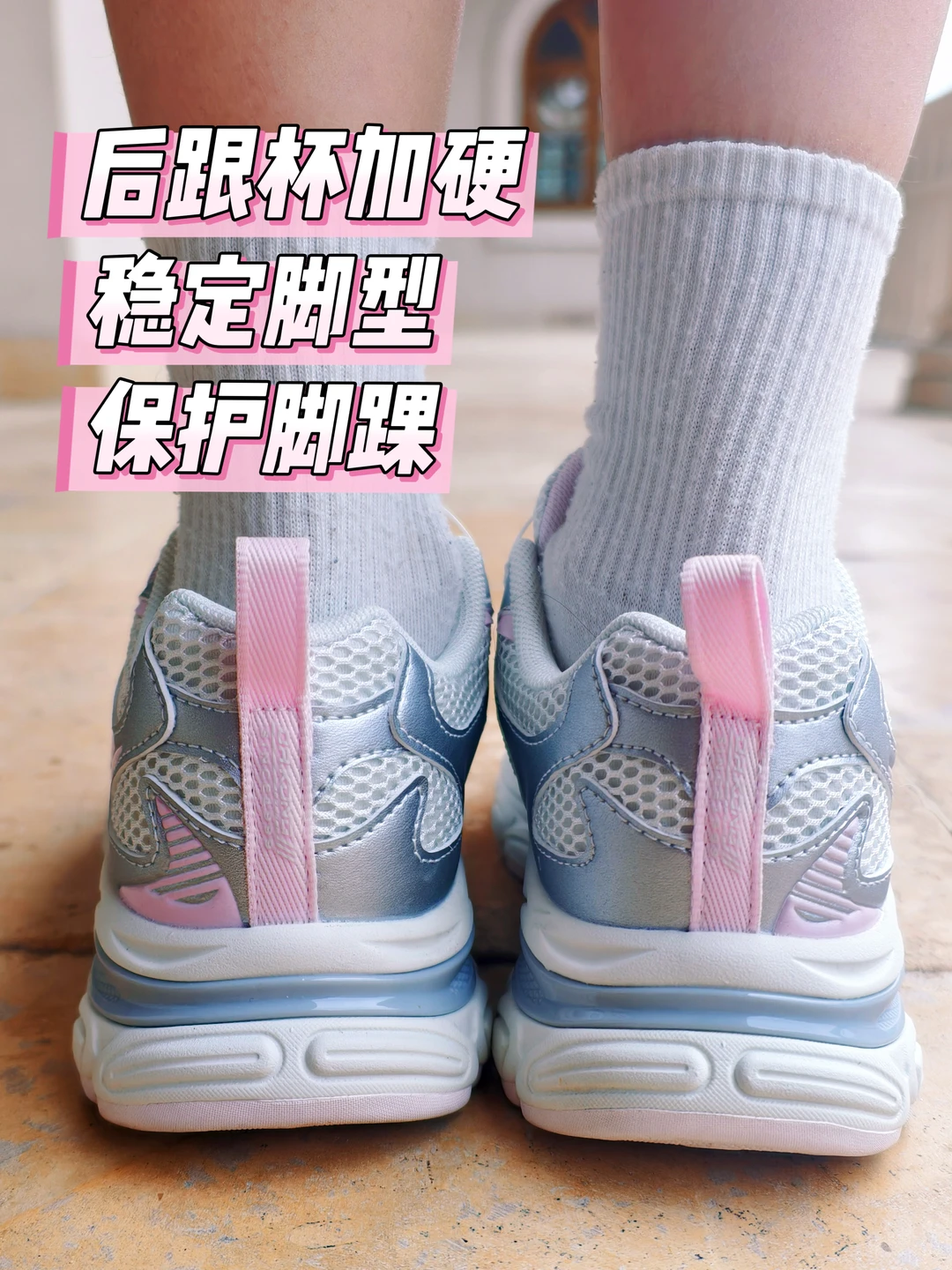 后跟杯是加硬的,能保护脚踝。娃在花园里疯跑疯跳也不怕崴脚,安全感拉满。