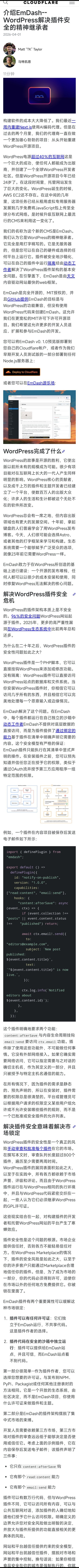 easy同学正在独立开发 Cloudflare 发布了一个clone wordpress的cms ……网页链接 (截图机翻可看链接原文)