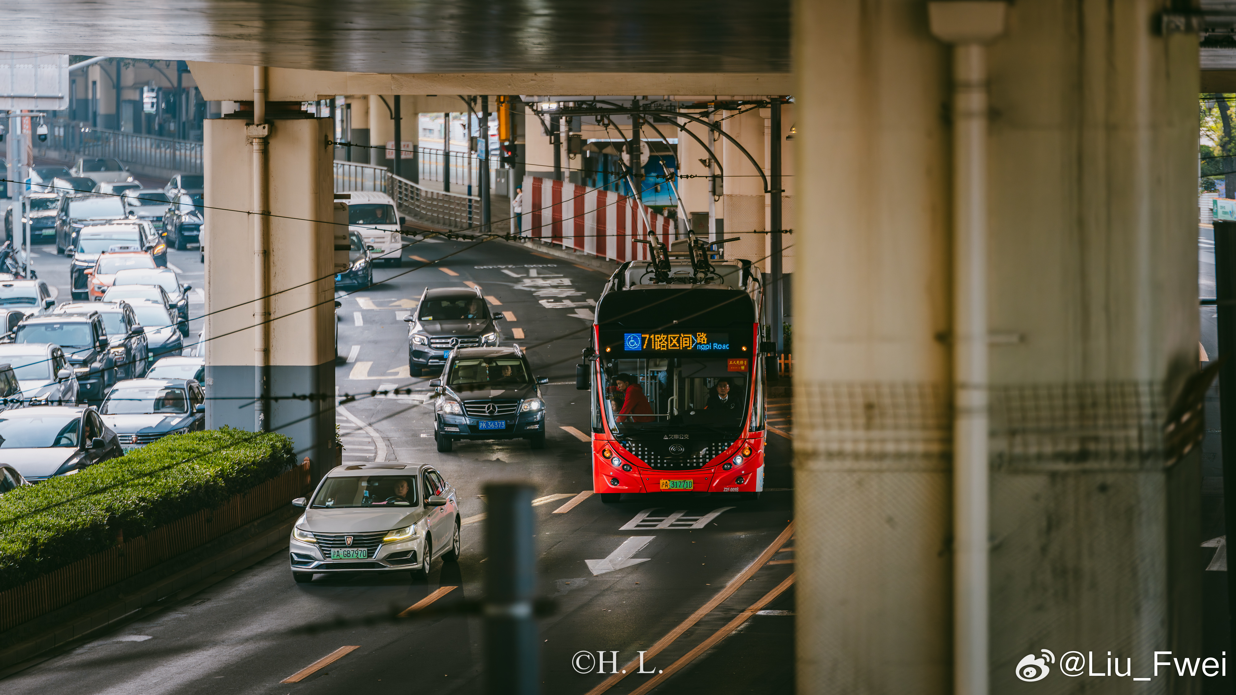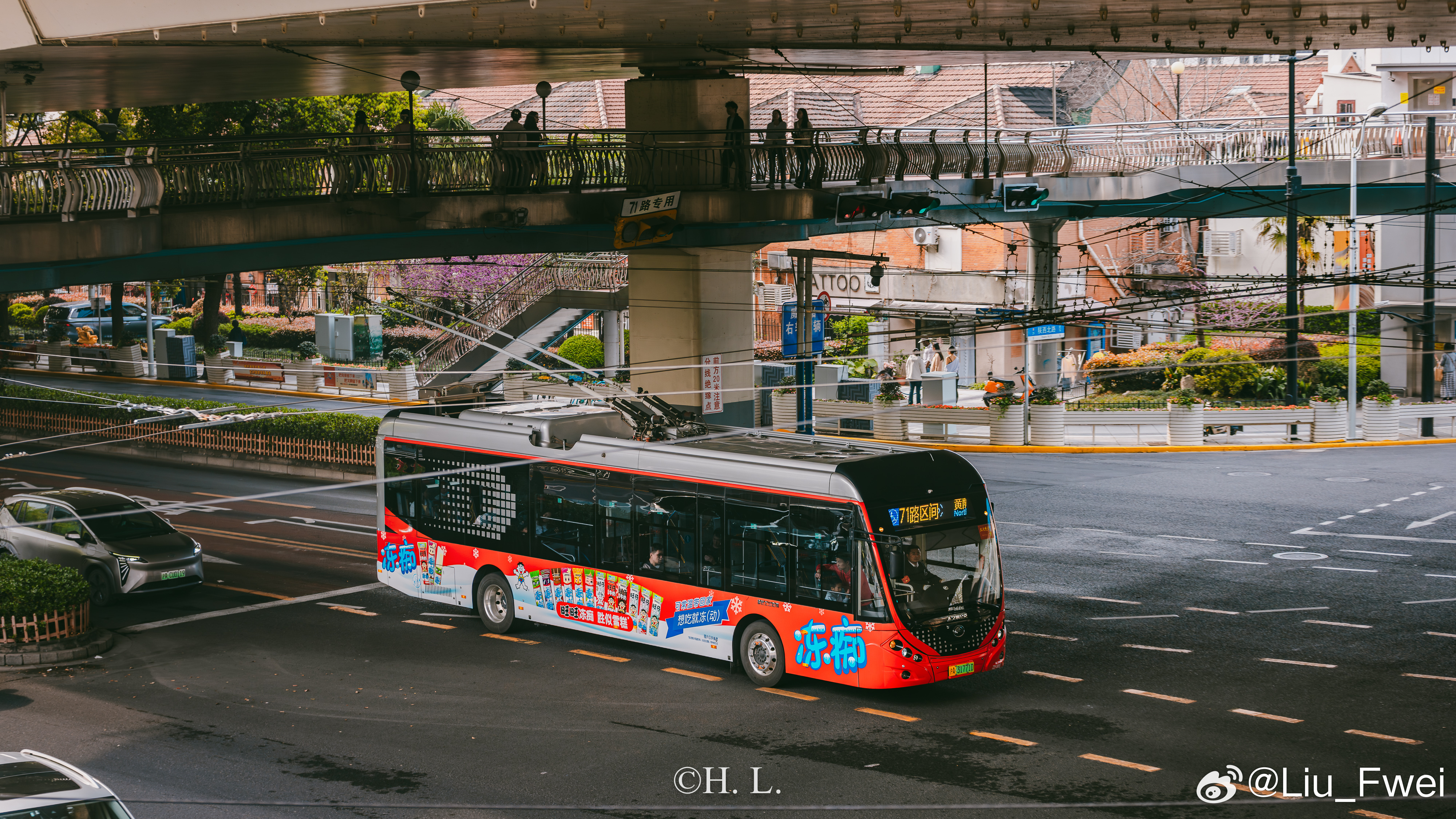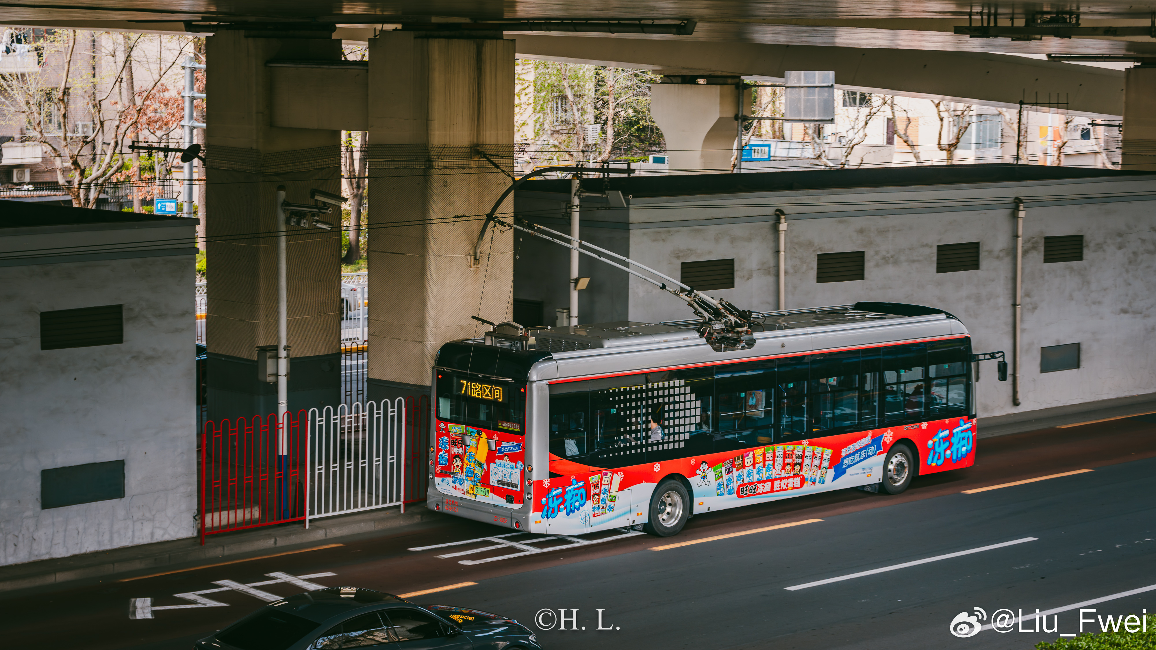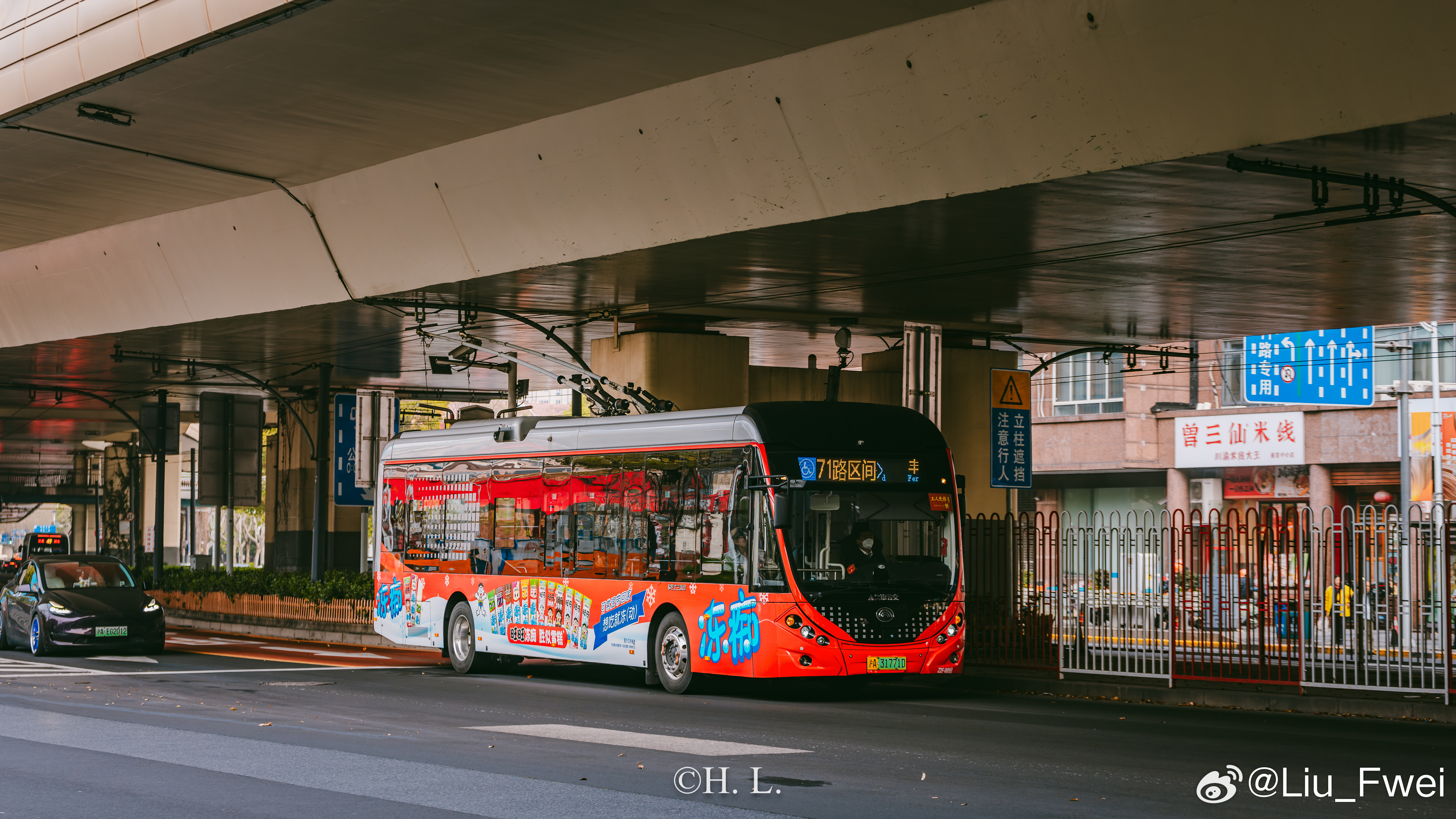 71路区间中运量无轨电车宇通客车 新广告,底色为大红色,挺配中运量的。广告为纯商