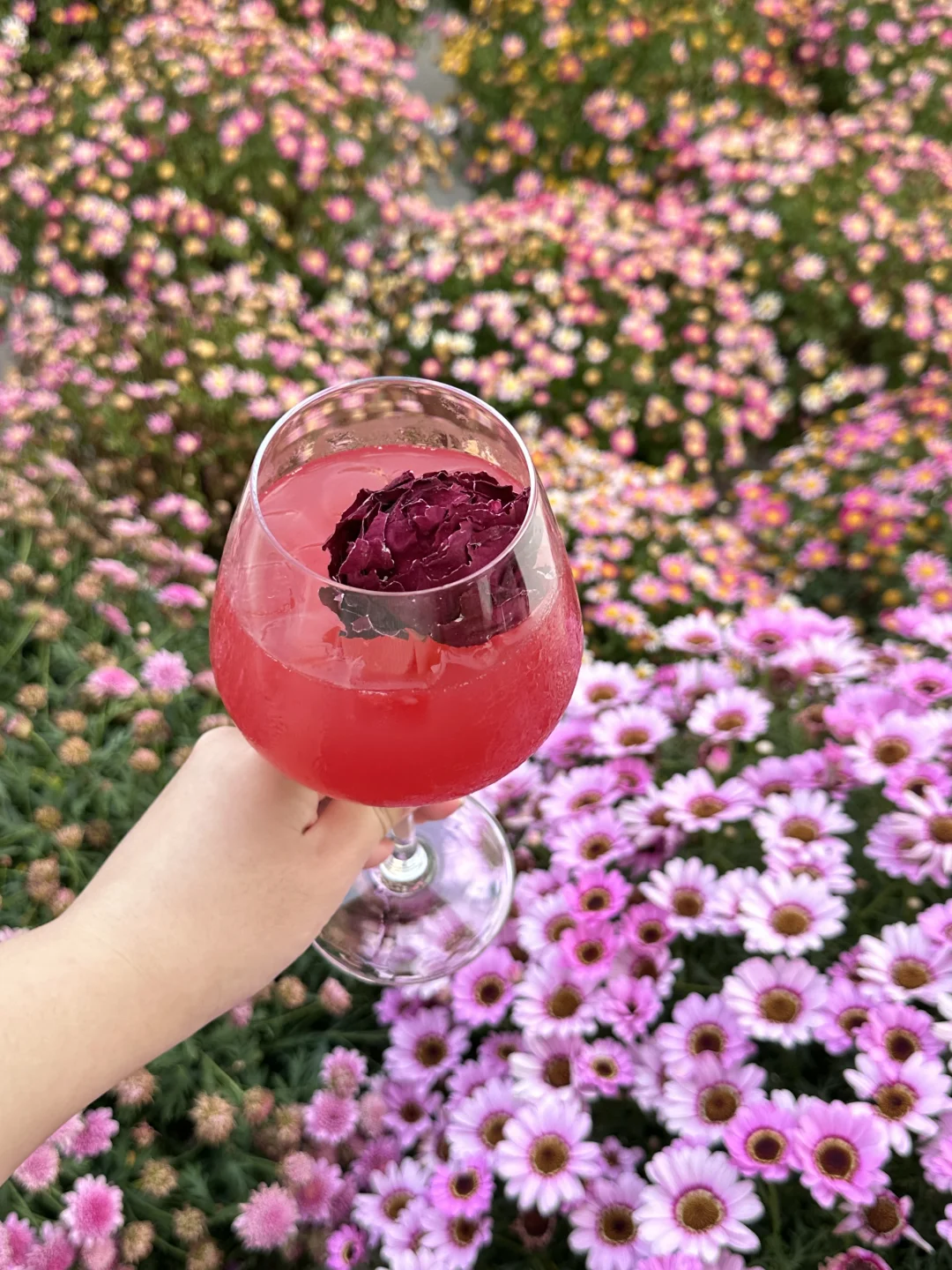 坐在粉色桌布的小桌前,点一杯颜值超高的玫瑰特饮🍹