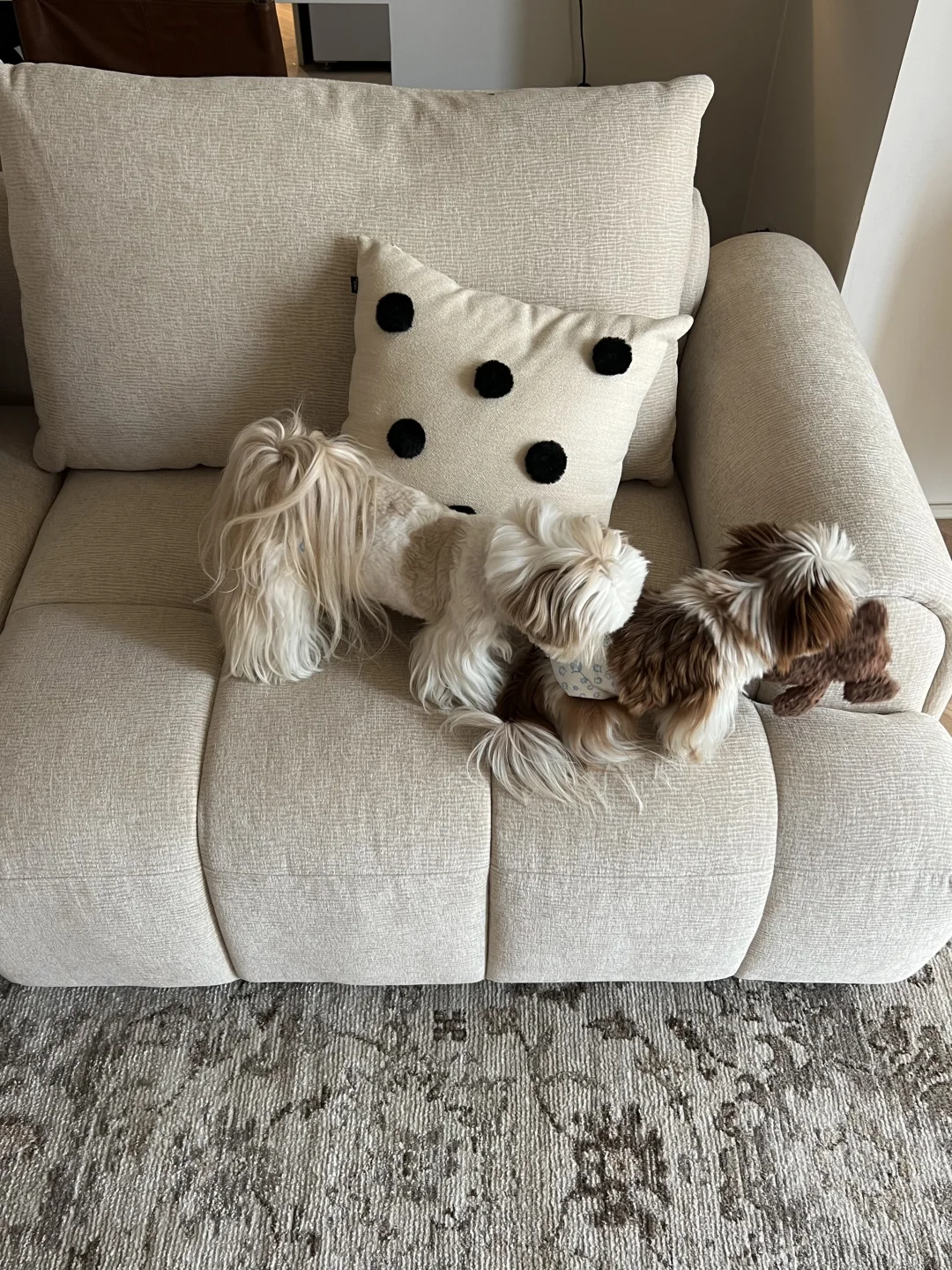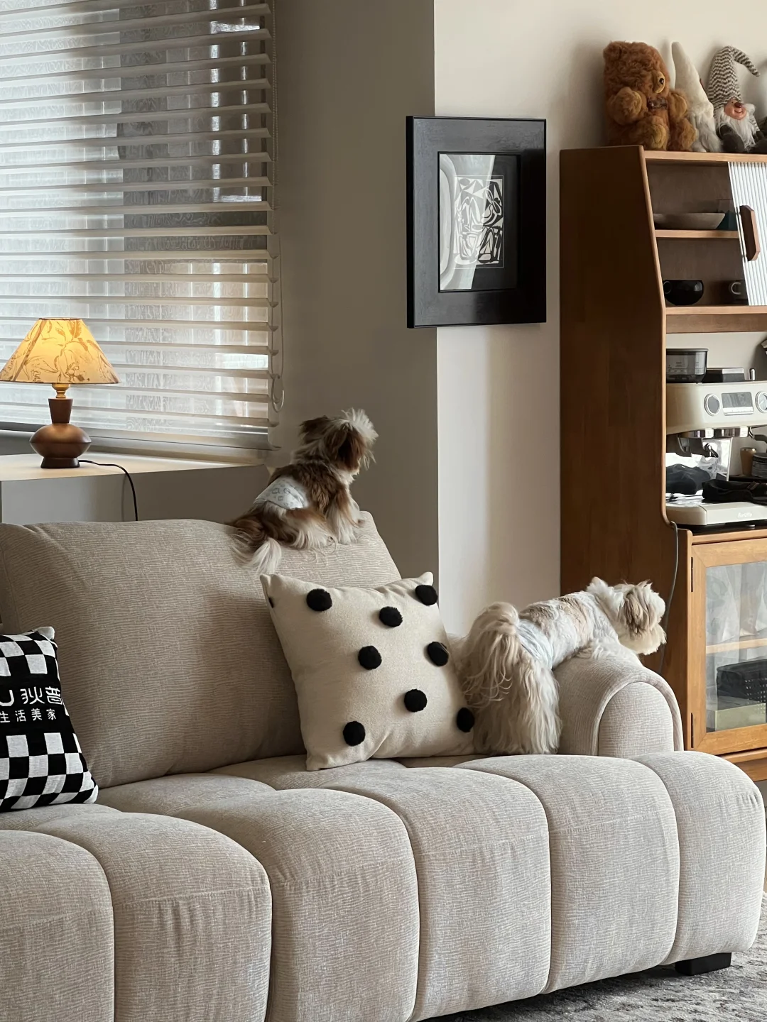 养了两只小狗 特意选的防抓布材质