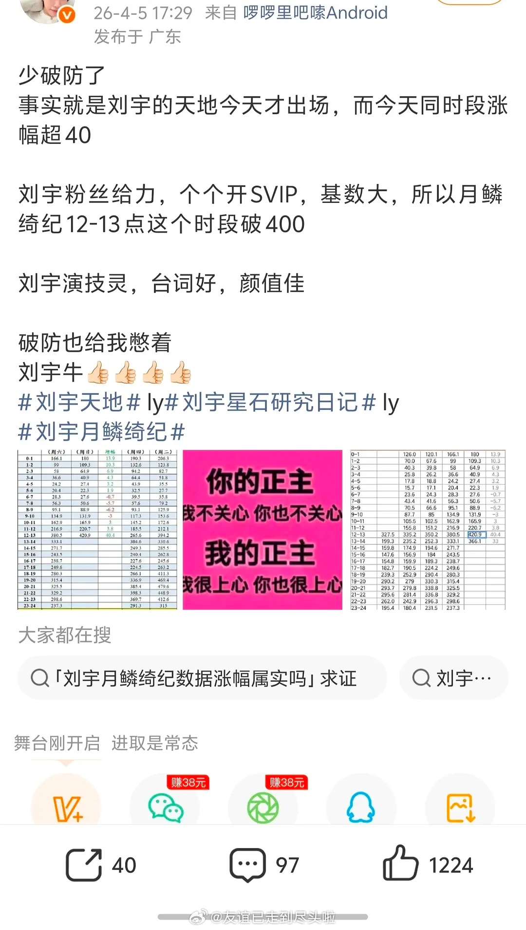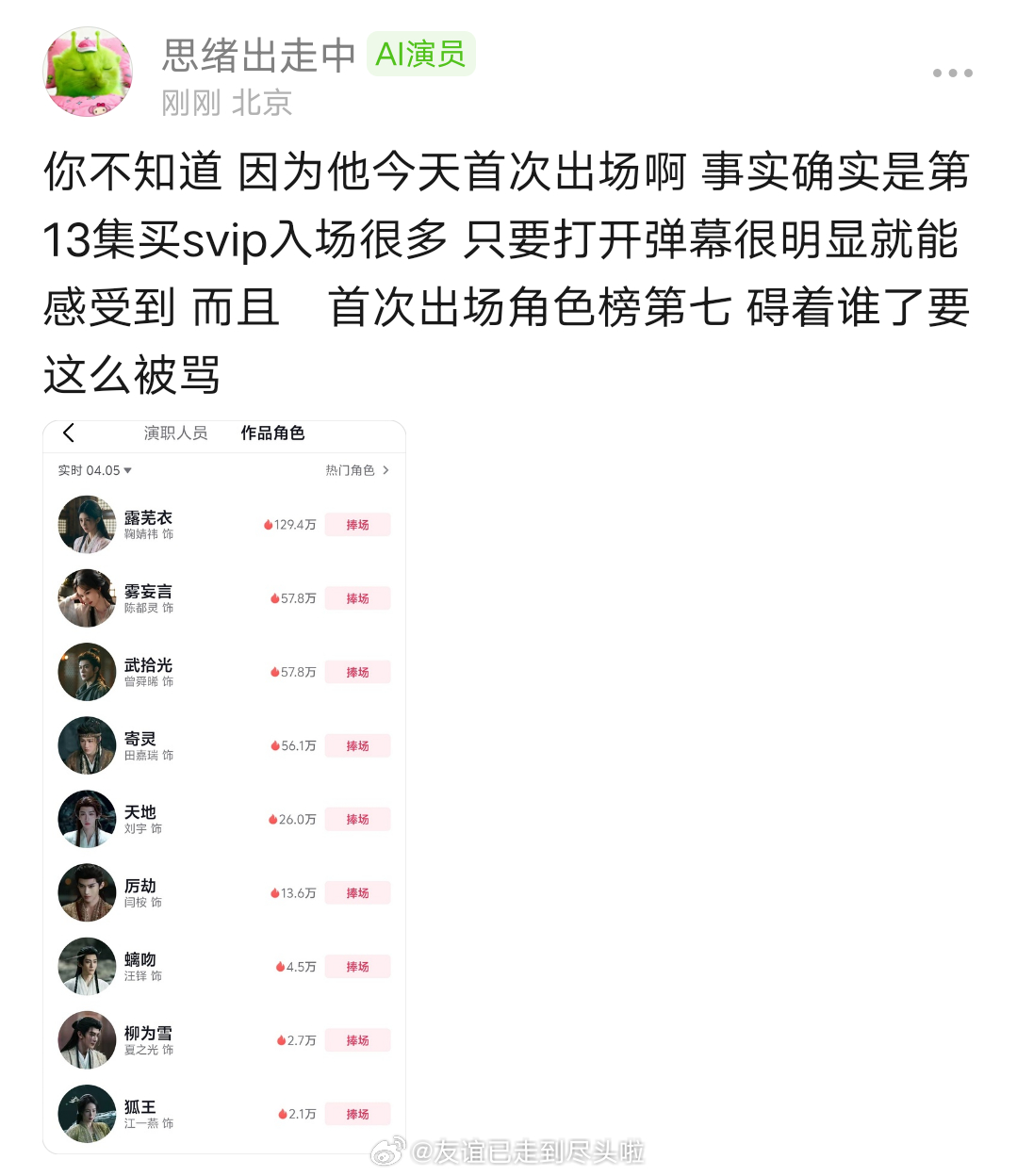 刘宇《月鳞绮纪》今天才出场,粉丝夸带动新观众入场,分时创新高。客串的角色也可以吹