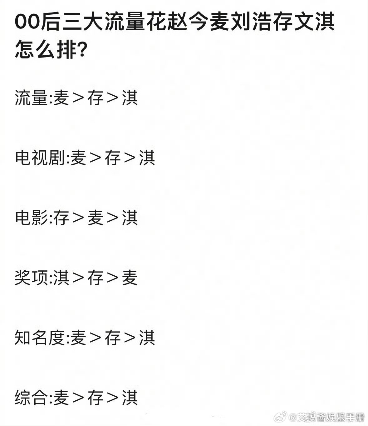 网友热议:00后三大流量花赵今麦、刘浩存、文淇怎么排?