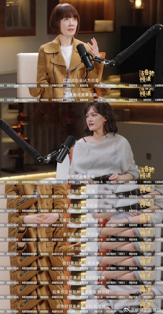 文淇被鲁豫安慰到哽咽了 文淇说想成为娜塔莉·波特曼却自我怀疑,鲁豫的安慰让她沉默哽咽,藏在心底的压力终于释放了吧😭