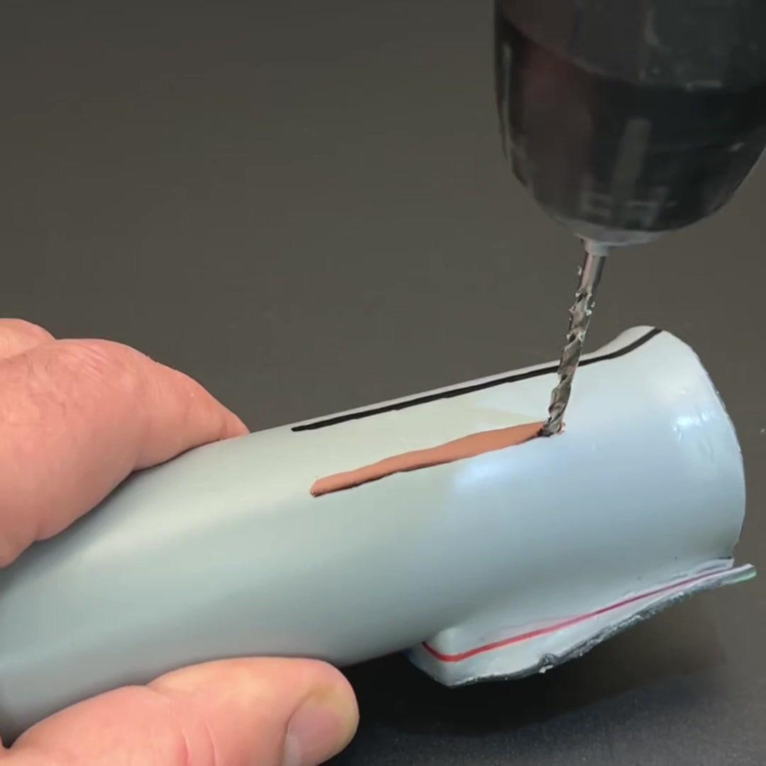 2️⃣打孔安装:用钻头在木板上打眼,间距按照鱼竿粗细调整,然后用螺丝把左右两侧的木板固定起来,加两个小侧档防止鱼竿晃动。