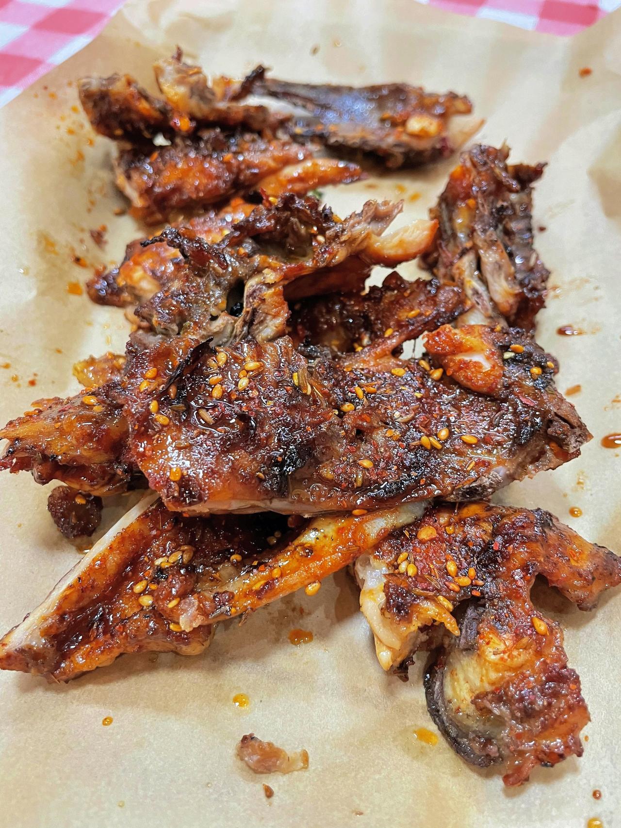 东北烧烤,不知道是否正宗的烤鸡架~酸甜口呢~