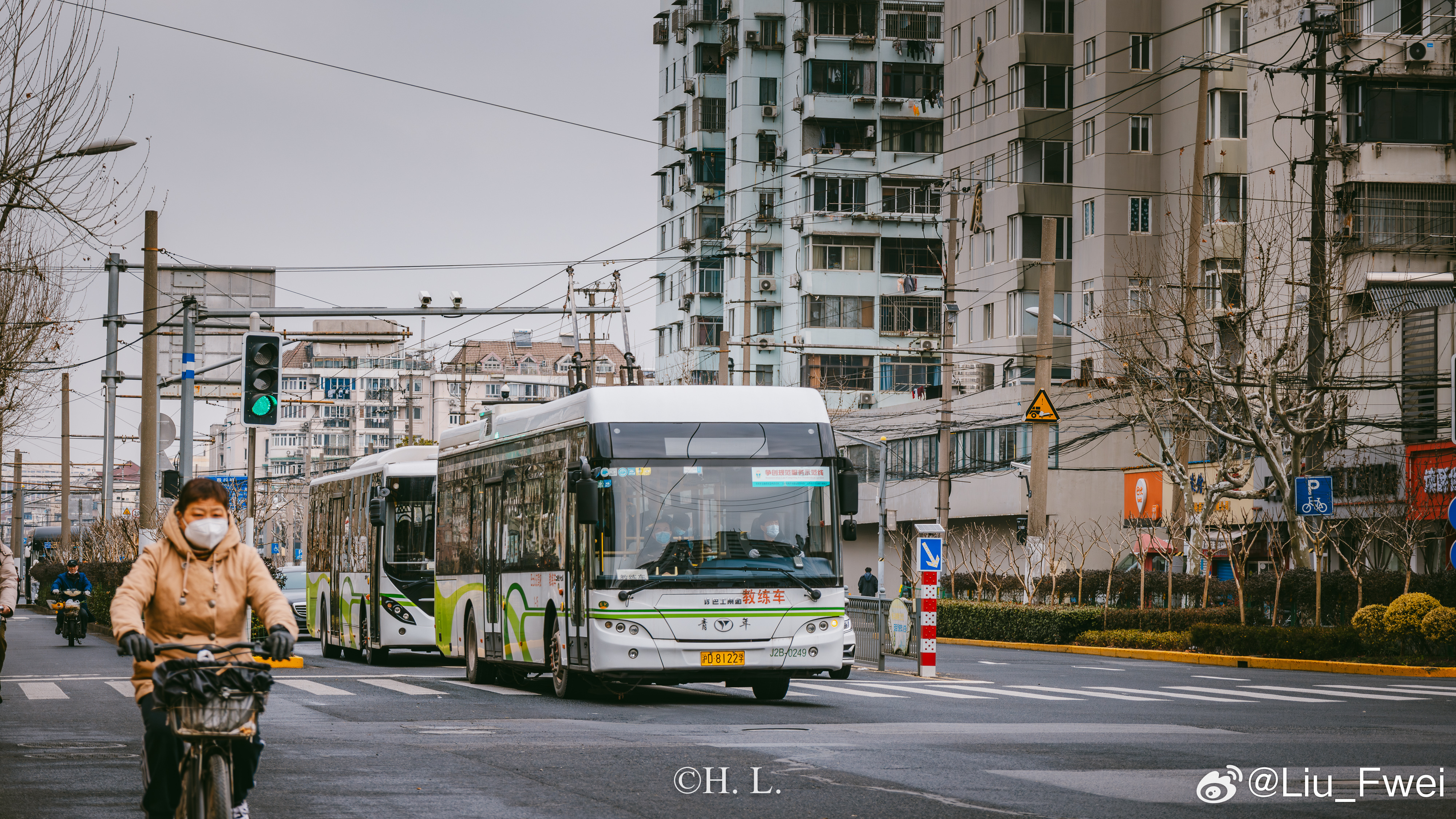 上海无轨电车教练车。无轨电车青年客车 JNPWG120G型电车。J2B249号,上海市杨浦区,2023年2月——上海最后一辆青年无轨电车运营车退役当天。