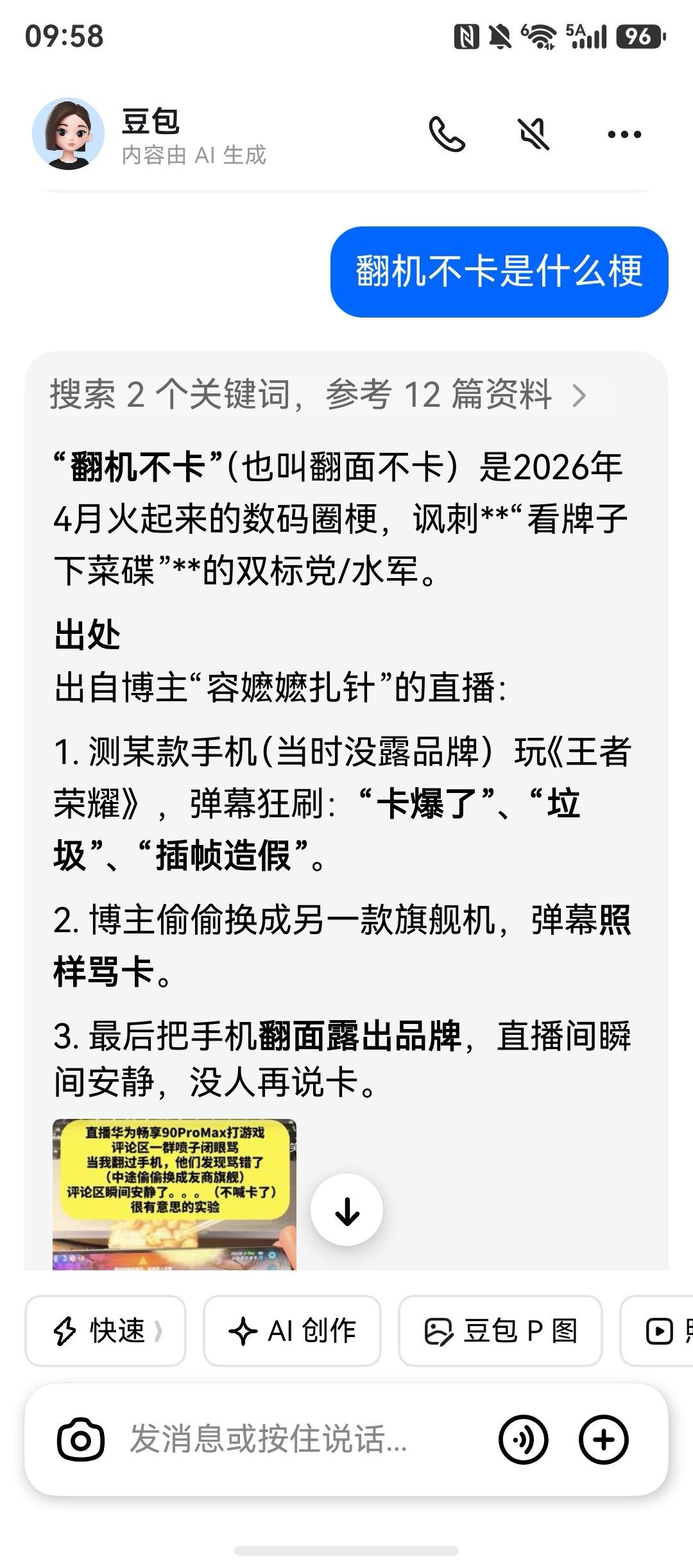豆包总结了翻机不卡这个梗