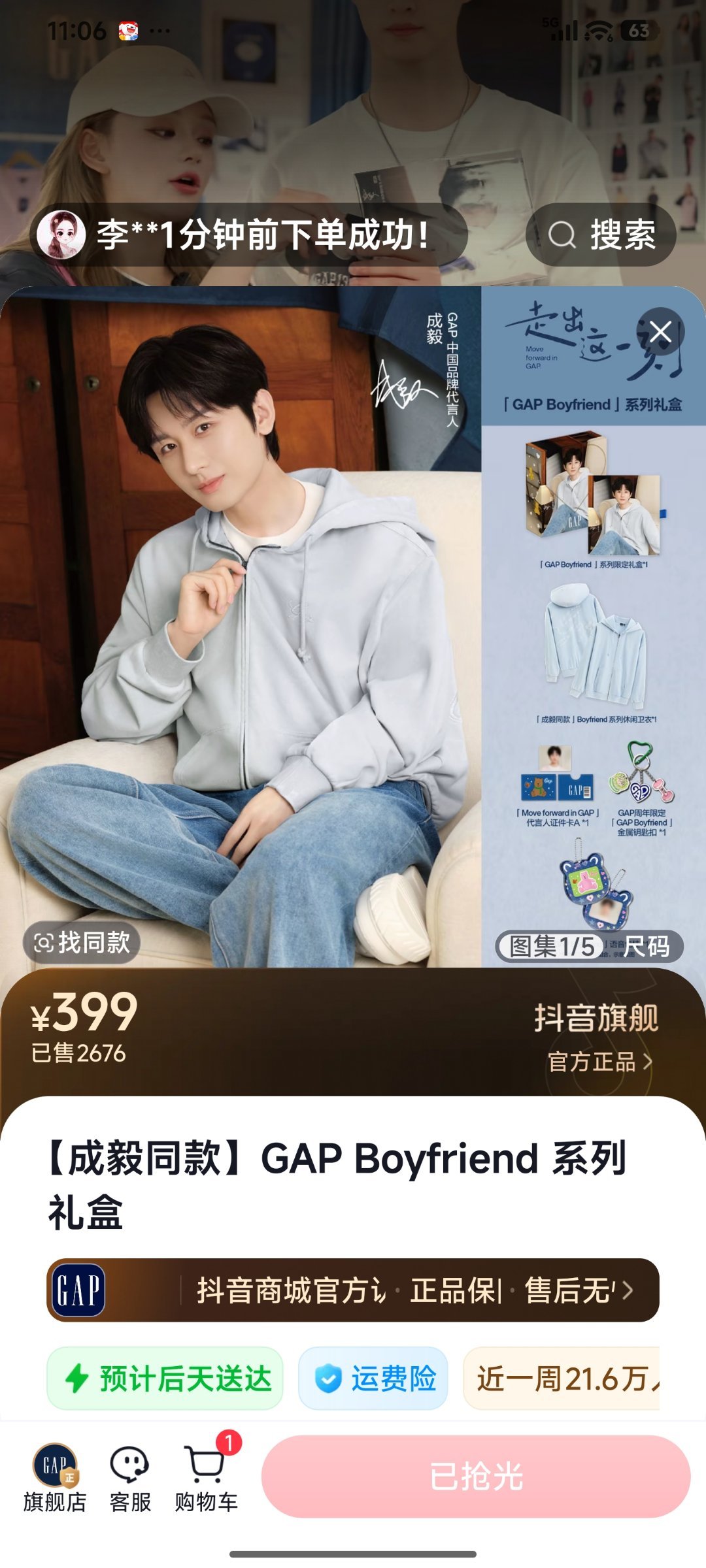 成毅GAP续约,抖,🍑同款套装礼盒全部售罄,星品影响力登顶,商业价值太顶,以至于隔着屏幕我都感觉GAP总裁在笑!