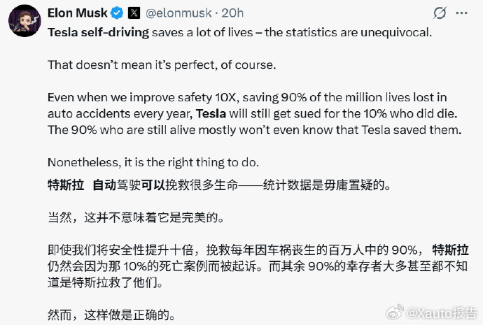 马斯克为特斯拉FSD鸣不平救人无数却因偶发事故受责,真是功高不赏,瑕不掩瑜。