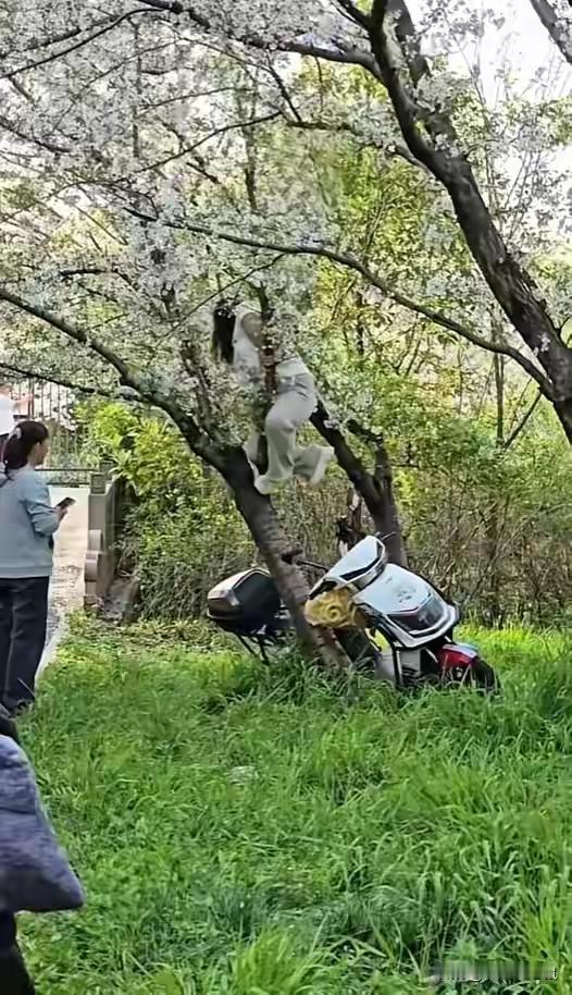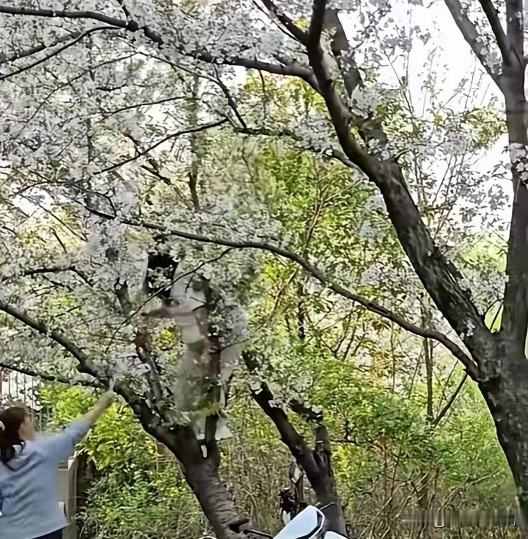 爬树拍照把樱花树直接压塌!上海这一幕引众怒:美照背后,是最丑的人心