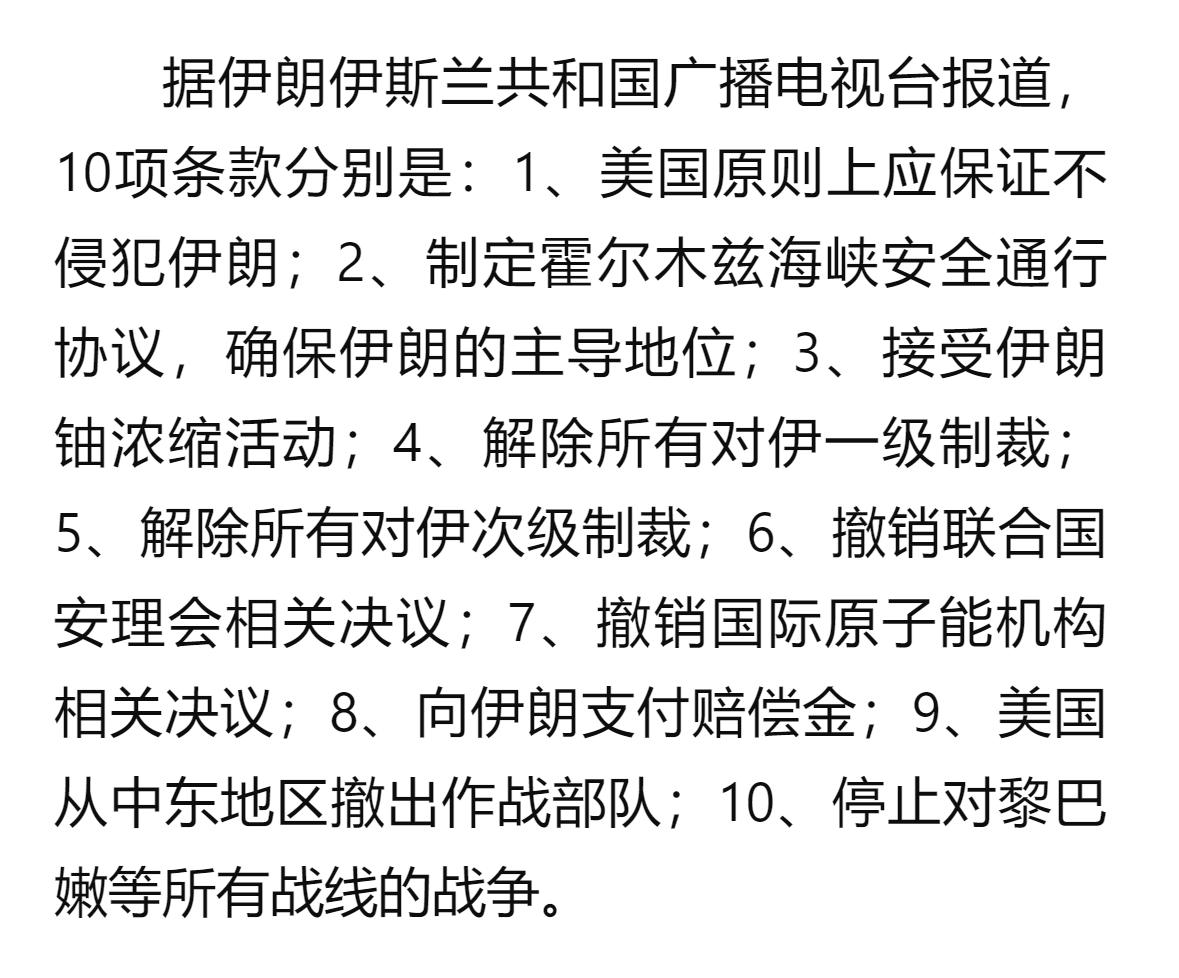 先看伊朗那十点计划到底写了什么。