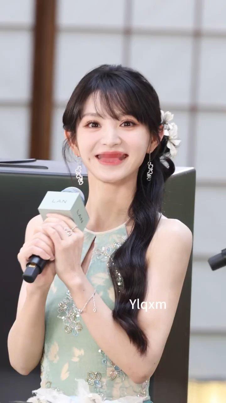 田曦薇今日线下活动造型,好灵的95花 田曦薇飞吻