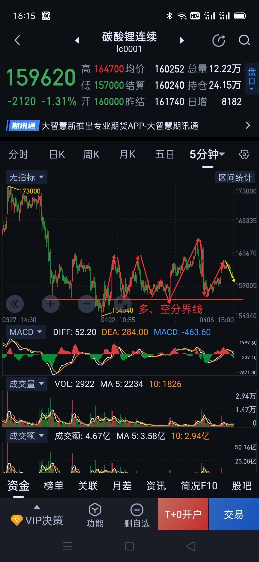 碳酸锂,明天或意外哪个先来。 碳酸锂,明天可能面临量变到质变的过程。今天的碳酸锂已处于临界点。接下来不在沉默中陨落就在沉默中爆发。 今天,碳酸锂正如图(1)所述,仍是围绕图(2)多空分界线争夺。多方不愿放弃阵地,仍在负隅顽抗。 明天,还需观察图(2)多空分界线的得失。若能站稳,不排除短期会浴火重生。若是多空分界线破坏,可能会引发多米诺骨牌效应,破坏图(3)的中枢可能仅仅是空头的第一目标。 碳酸锂在此位置,要多一份谨慎,少一些幻想。一定不要被我“执” 蒙蔽了双眼。