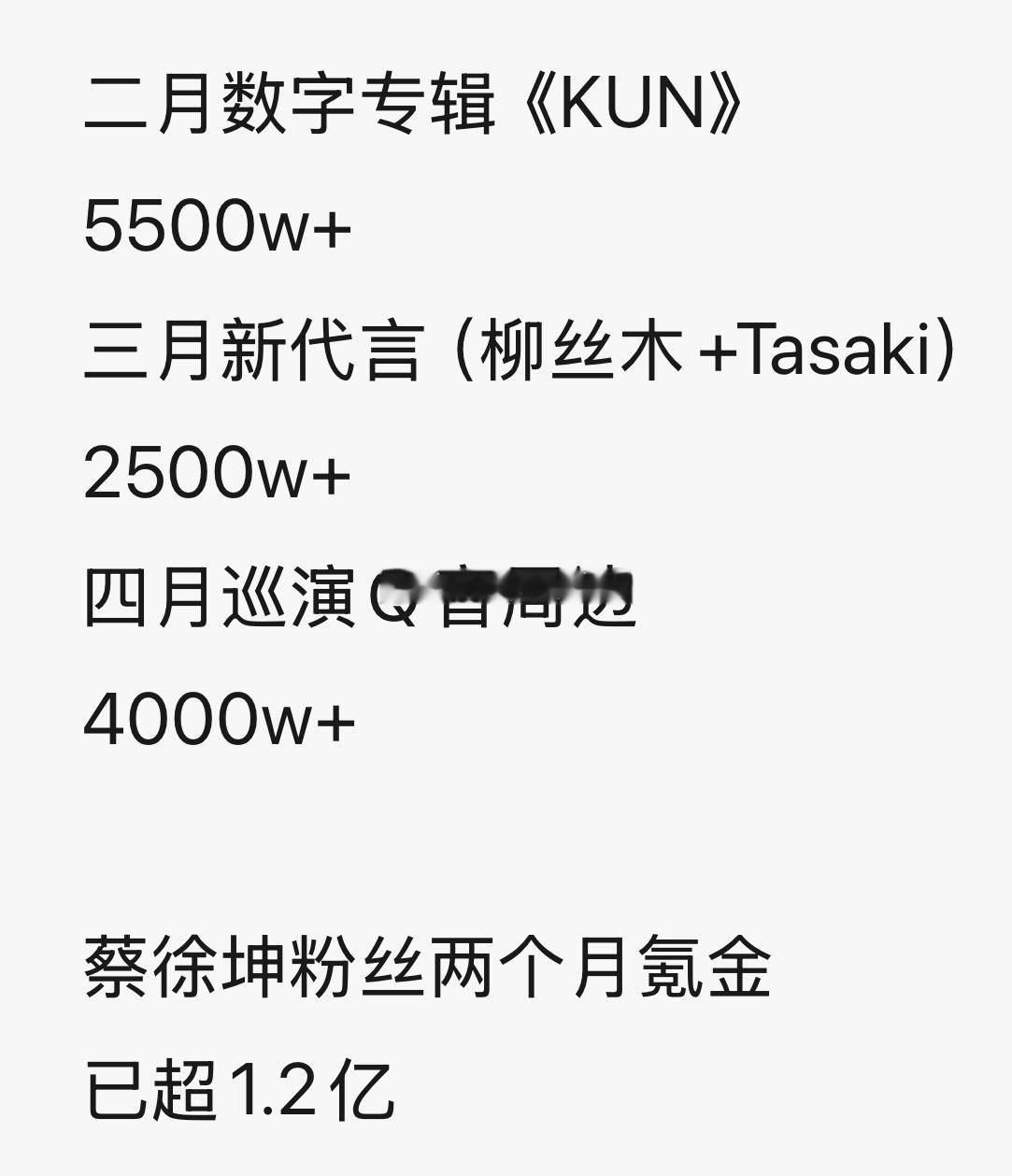好夸张 蔡徐坤巡演周边上线仅五天 ikun随便买买销售额已超4000w…保守估算