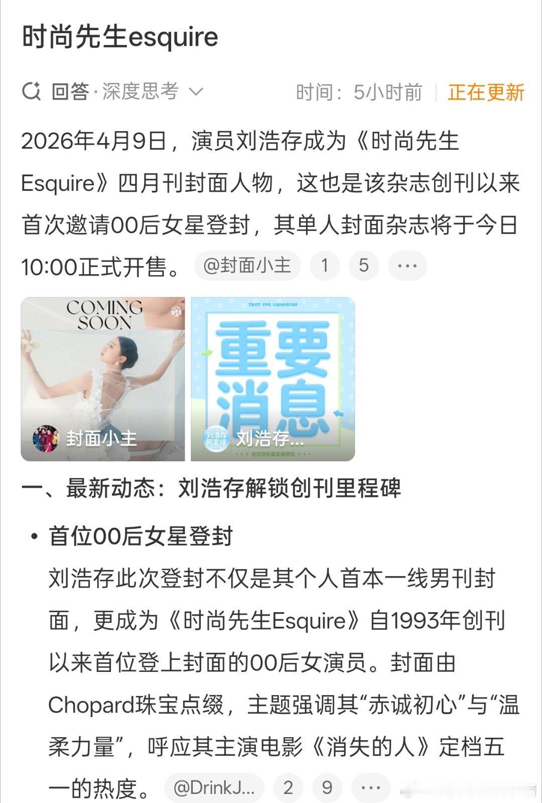 刘浩存时尚先生封面成为首登杂志的00后女星🎊🎊