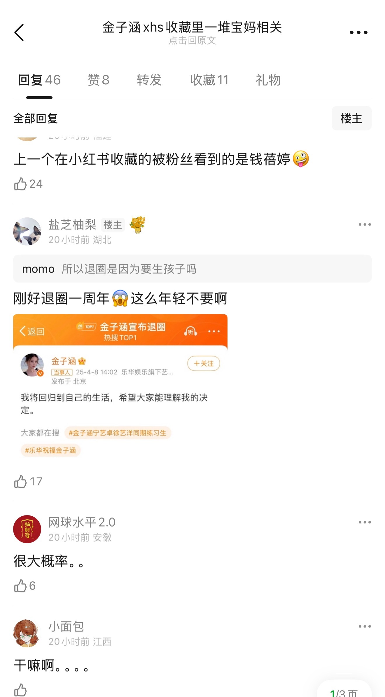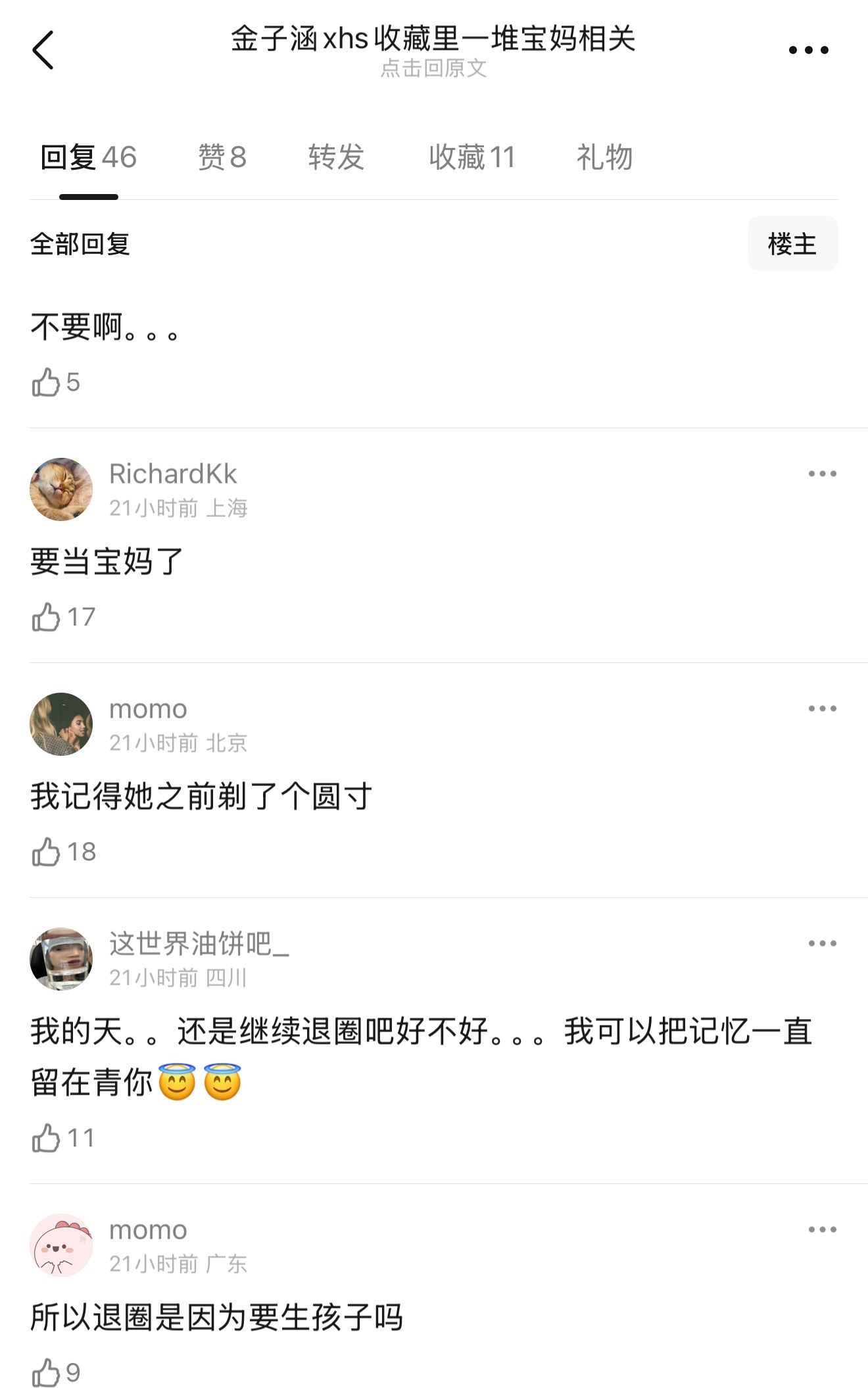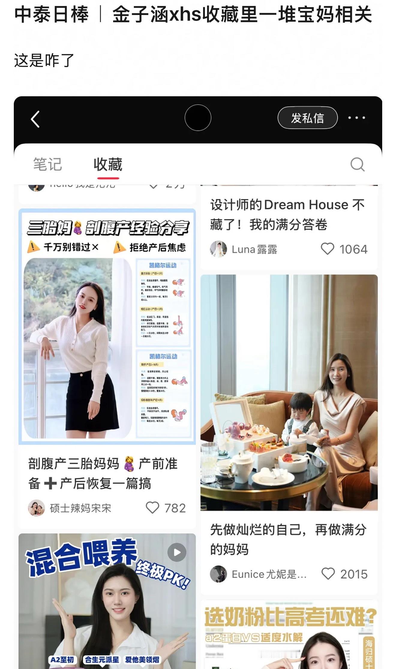金子涵xhs收藏里一堆宝妈相关,从剖腹产到产后恢复到选奶粉到育儿,未免太全面了点🙊