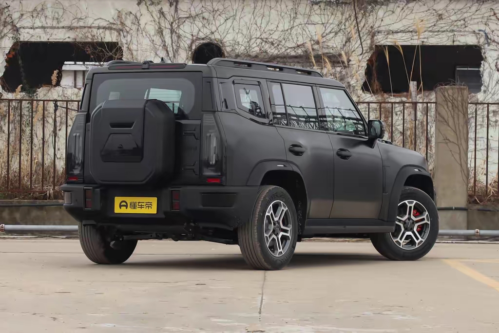 外观上两车一眼就能区分开,骏马版用的是专属的骊影黑哑光车漆,看着比普通版的亮面车漆更有质感,也更显硬朗,全车还做了黑化处理,车标、中网、行李架、轮眉这些地方全是黑色,再配上红色的刹车卡钳,整体黑武士的氛围特别浓,轮毂也是熏黑越野样式,部分版本还直接配备AT胎,气场比普通版强了不少。普通版就是常规的亮面漆和普通轮毂,外观相对低调一些,没有这么强的视觉冲击。不过骏马版的哑光车漆也有缺点,后期如果出现剐蹭,补漆会比普通版更贵,而且稍微有点灰尘就会显得比较旧,日常打理要更上心。
