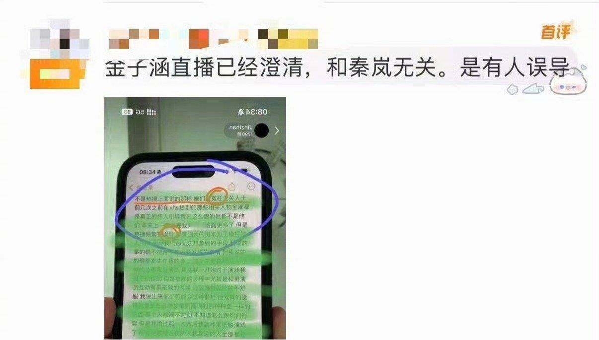心疼一个女明星不该用造谣另一个女明星的方式,金子涵直播最新回应,否认是秦岚,回应