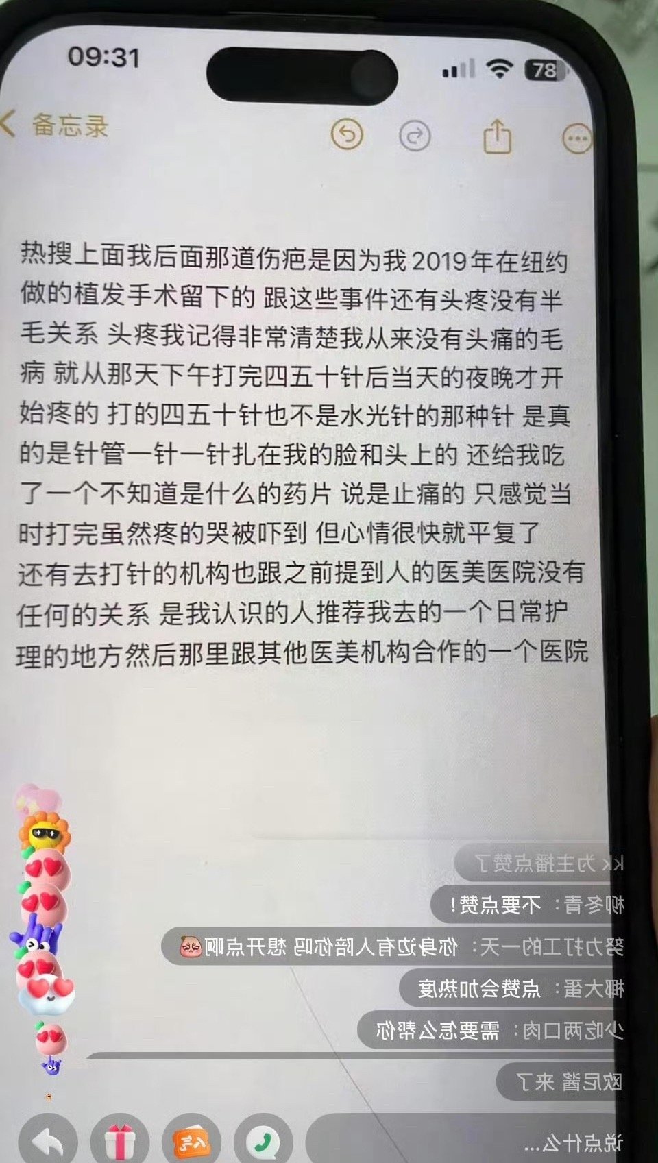 心疼一个女明星不该用造谣另一个女明星的方式,金子涵直播最新回应,否认是秦岚,回应后脑勺伤疤,植发手术留下的。秦岚工作室也发博回应表示俩人并无交集。金子涵否认是秦岚